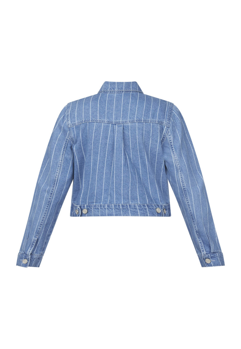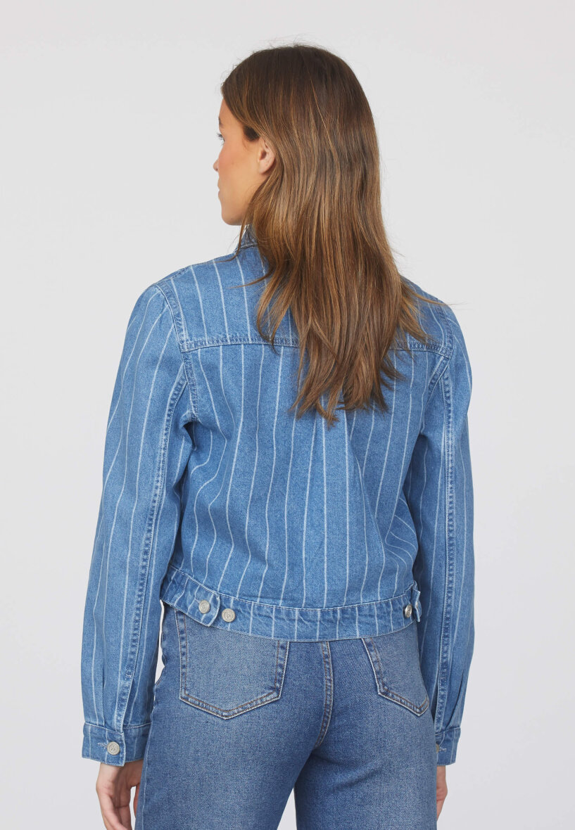 Smart kort denim jakke fra Sisters Point. Den blå denim jakke er lavet i et smart stribet design.