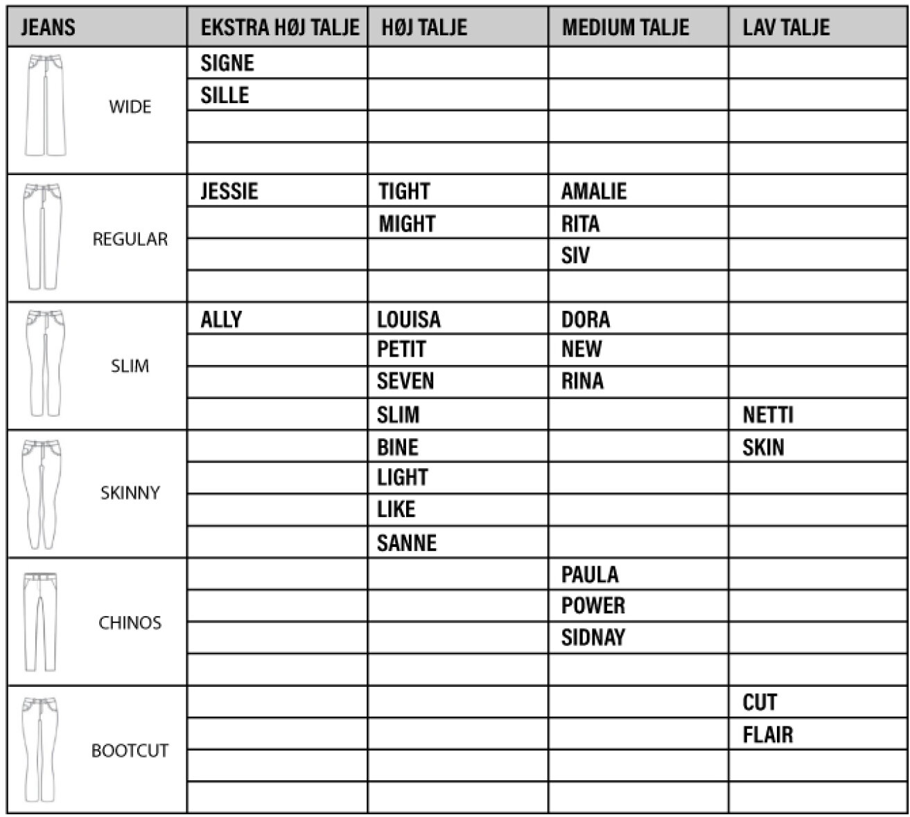 Længden på buksen er indvendige mål, og der kan være 1-2 cm difference.