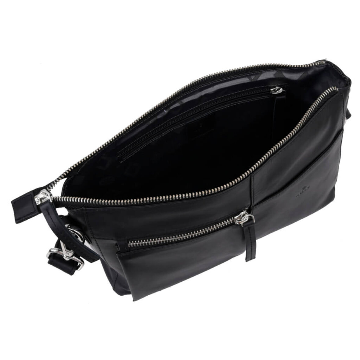 Indvendig er tasken med god rummelighed. Tasken er med et primær rum med en lynlås lomme i siden til småting. Foran er taksen med en lille lynlås lomme, som samtidig med funktionalitet giver et flot look til tasken.