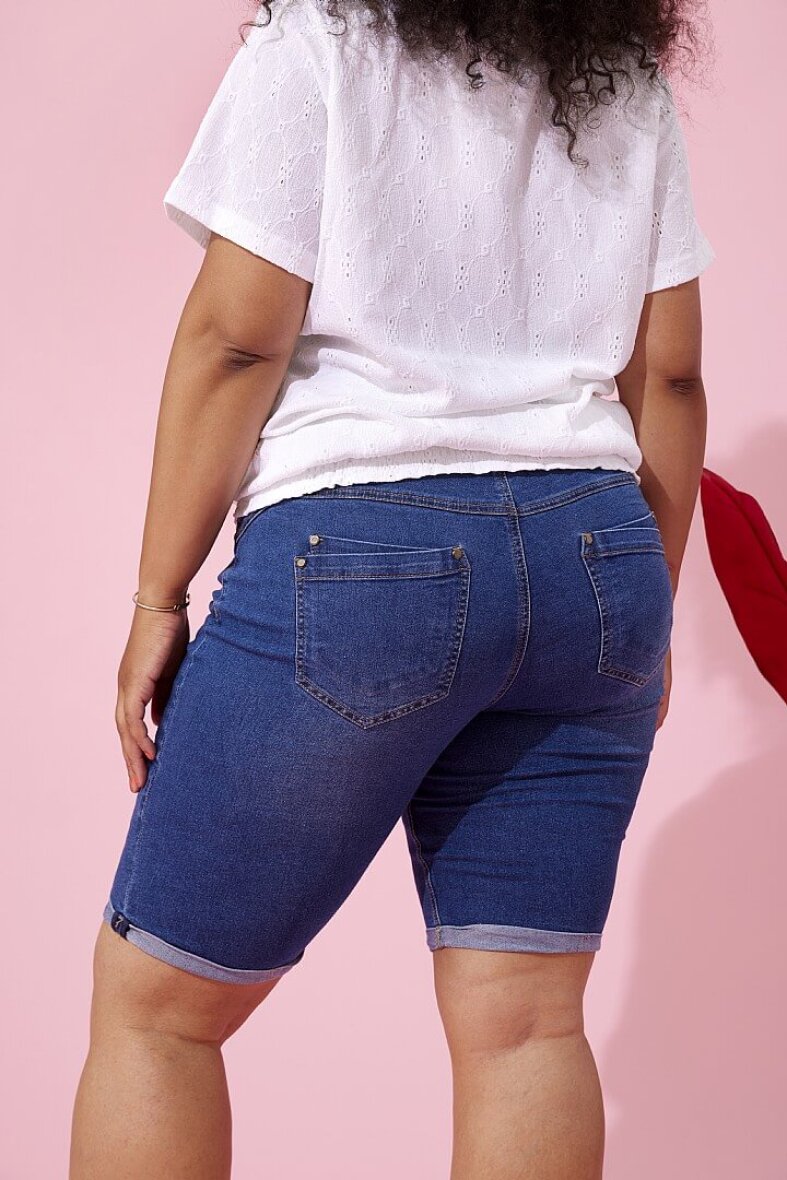 Smarte denim shorts fra Zhenzi. Shortsene er lavet i et klassisk design med knapluk og lynlås foran. Med bæltestropper og 7-lommer.