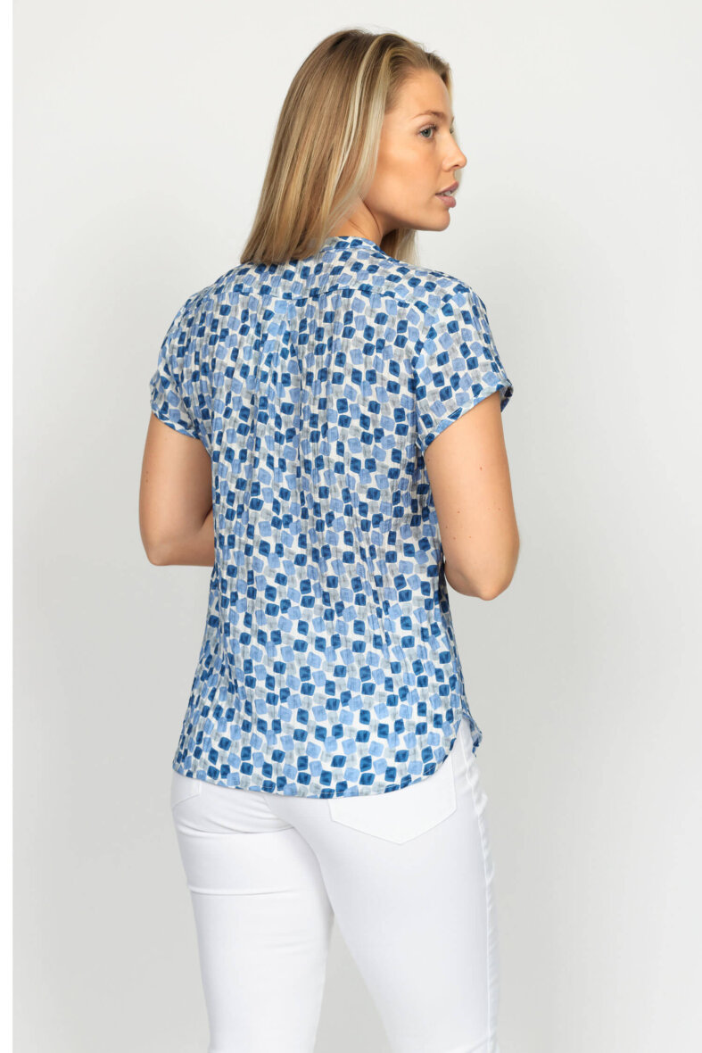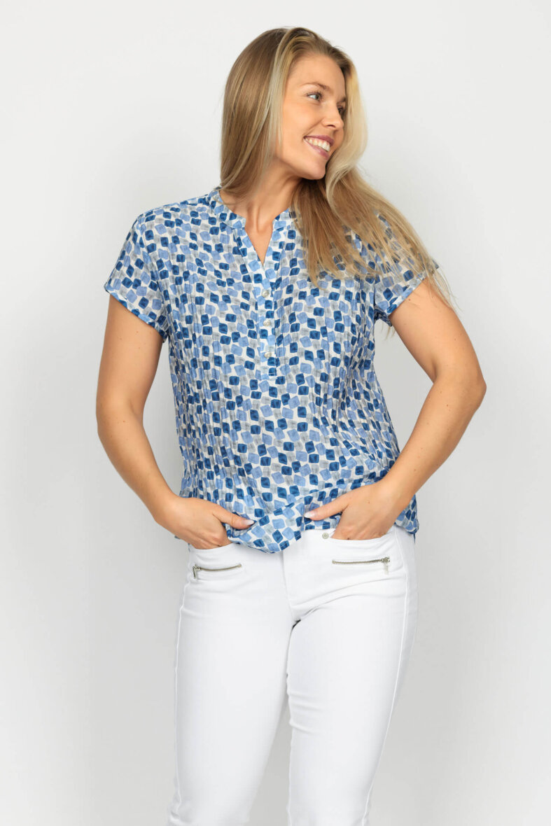 Flot bluse fra 2-biz i modellen BEATE. Blusen er designet i et flot grafisk print i blå nuancer, som passer til de fleste sæsoner.