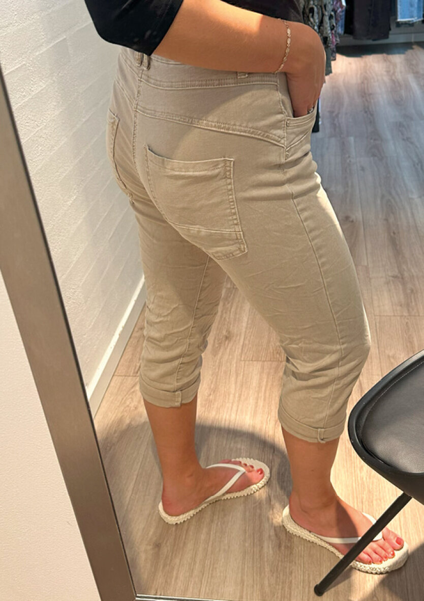 Sandfarvet korte capri bukser fra Marta du Chateau, som passer perfekt til de varmere måneder.