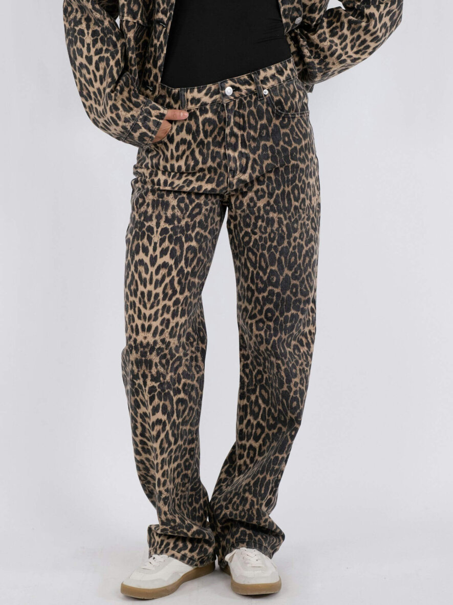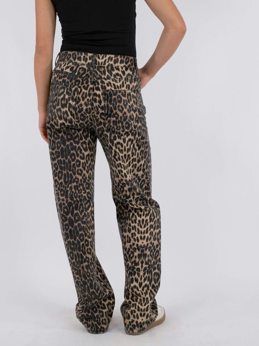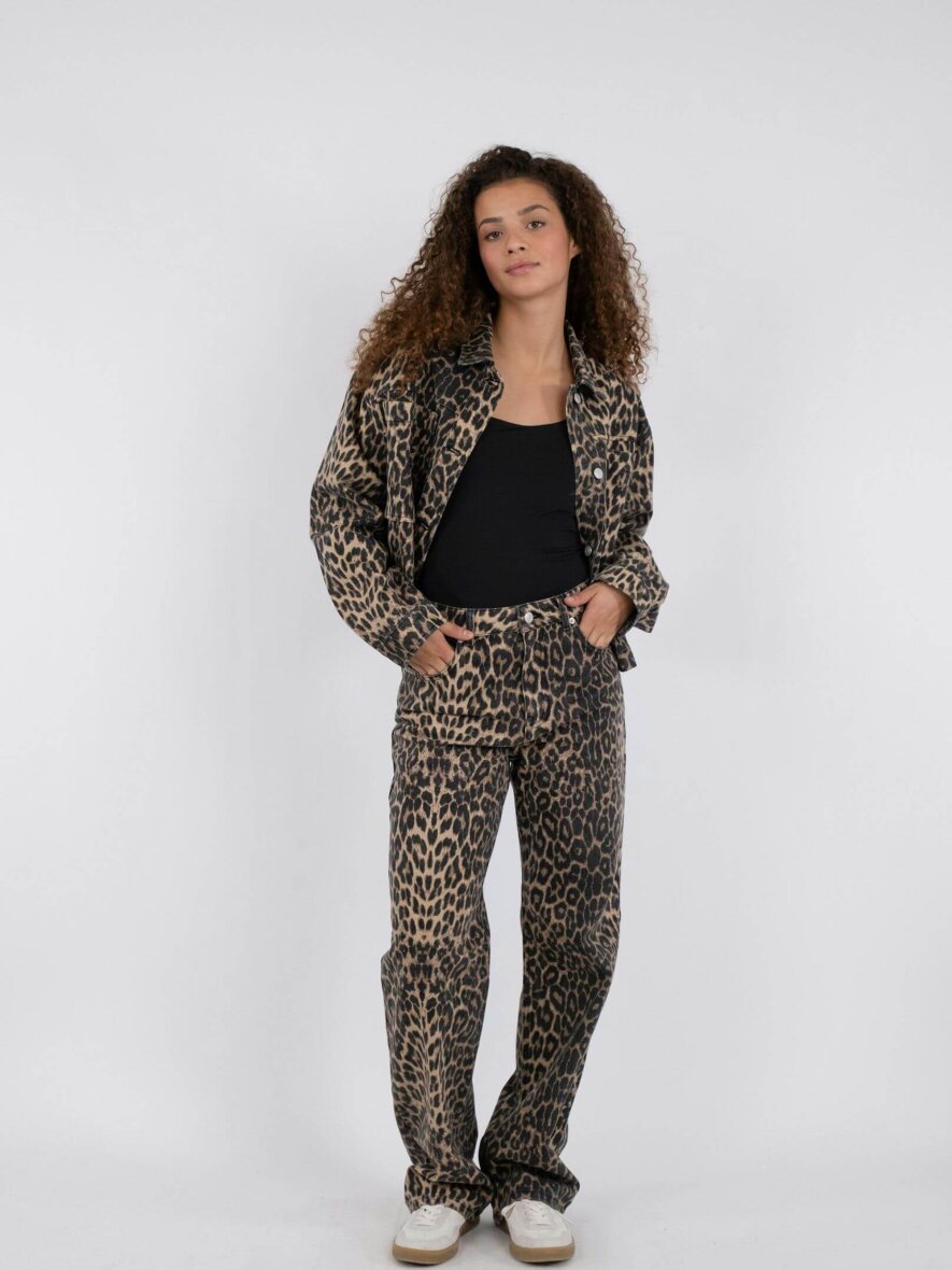 Skønne Simona bukser fra Neo Noir i et moderne leopard print. Buksen er et mid-waist buks med lige ben og bred bukseben. Leopardbukserne er lavet i en lækker 100% bomuldskvalitet.