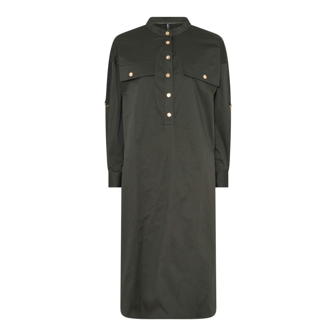 Flot mørkegrøn kjole fra Soulmate med fine guld detaljer. Kjolen er med rund hals og stolpeluk med store fine guld knapper.