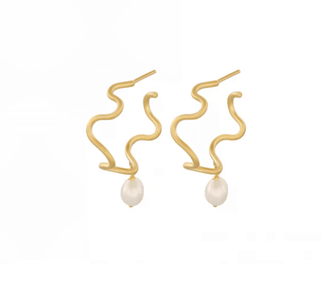 Øreringene er lavet i et fint og kreativt "krøllet" design med en smuk hvid Baroque perle. Str.: 30 mm.
