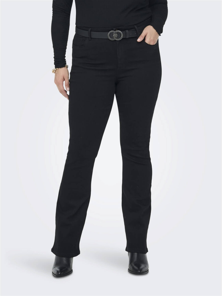 Smarte sorte bukser fra ONLY CARMAKOMA. Sally modellen er en højtaljet og flared buks med brede bukseben.