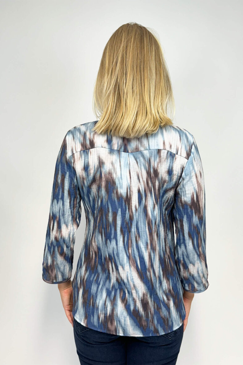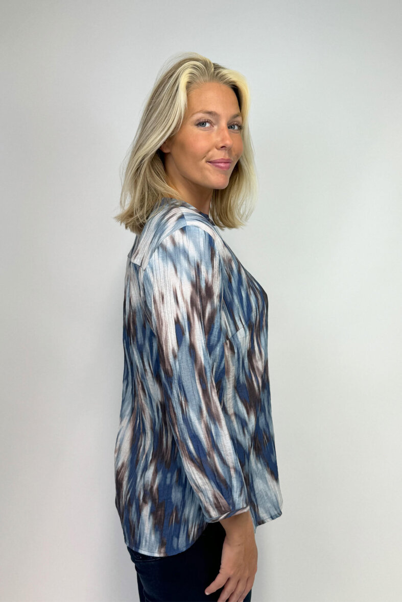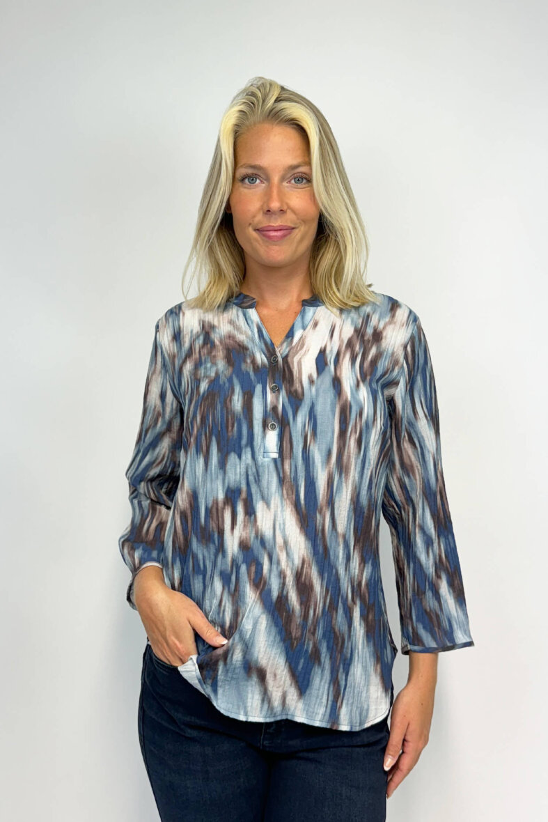 Flot og feminin bluse fra 2-Biz. AMOA blusen er lavet i et flot let plisséret design i brune og blå nuancer.