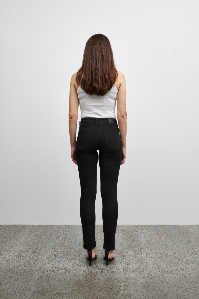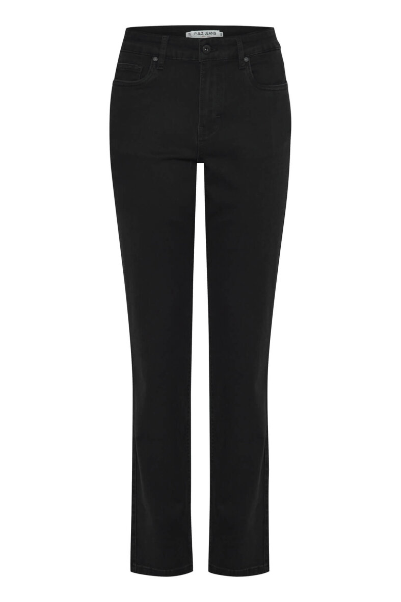 Lækker buks i et klassisk design fra Pulz Jeans. Modellen Emma er en højtaljet buks med straight leg. Den sorte buks har et enkelt og klassisk design. Buksen er lavet i et klassisk jeans design med knap- og lynlåsluk foran, bælte stropper og 5 lommer.