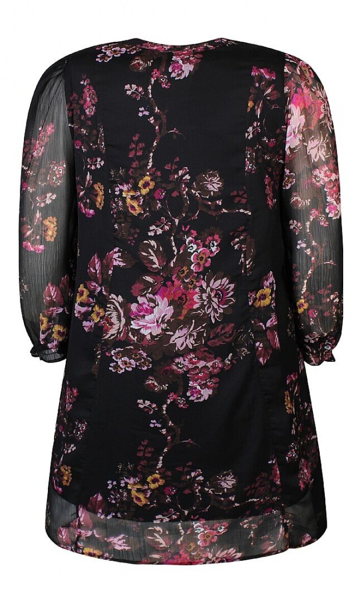 Kjolen består af to dele, hvor den yderste del er lavet i chiffon med transparente ærmer. Herunder er der en påsyet sort inderdel i en dejlig blød viskose kvalitet.