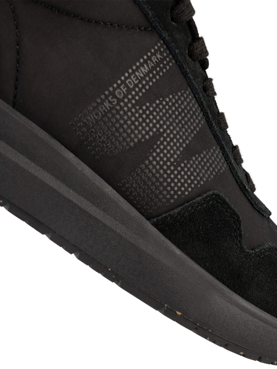 Skoen har et trendy design med et stort "W" på siden af skoen samt en sort tyk gummibund bestående af 10% genanvendt gummi, som giver skoen et lidt sporty look.