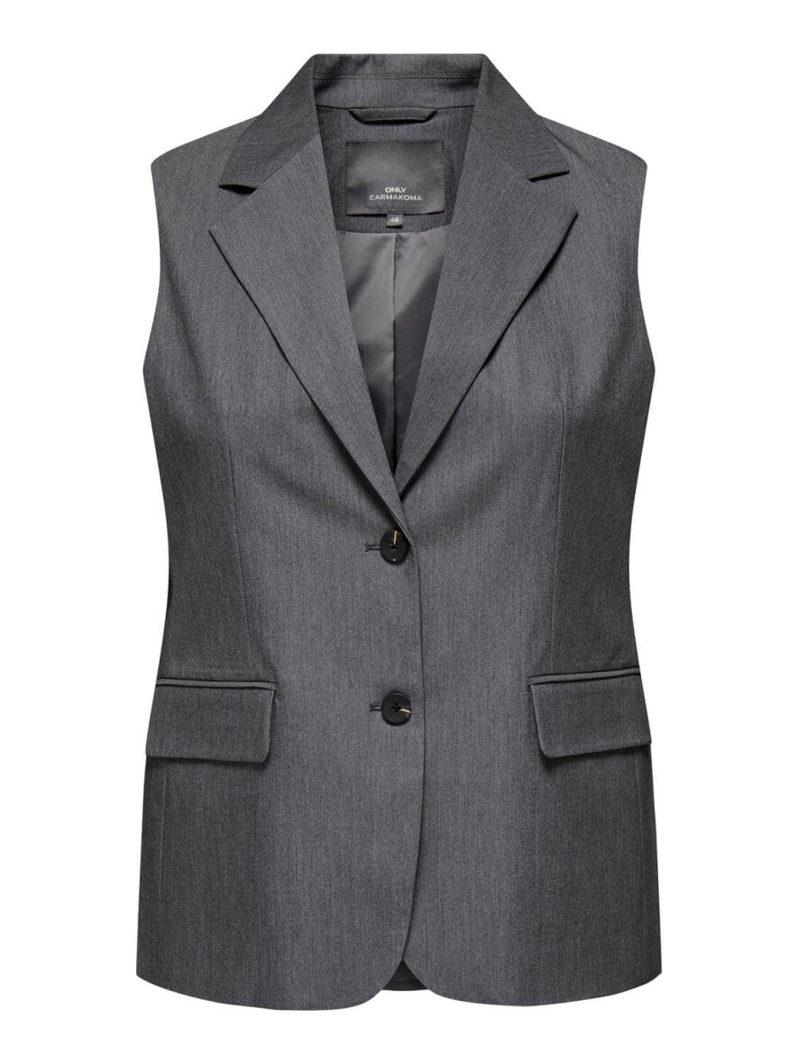 Skøn grå skræddersyet vest med lidt længde fra ONLY Carmakoma. Vesten er lavet i en fedt design med revers. Vesten er desuden lavet med to store knapper samt to snydelommer.