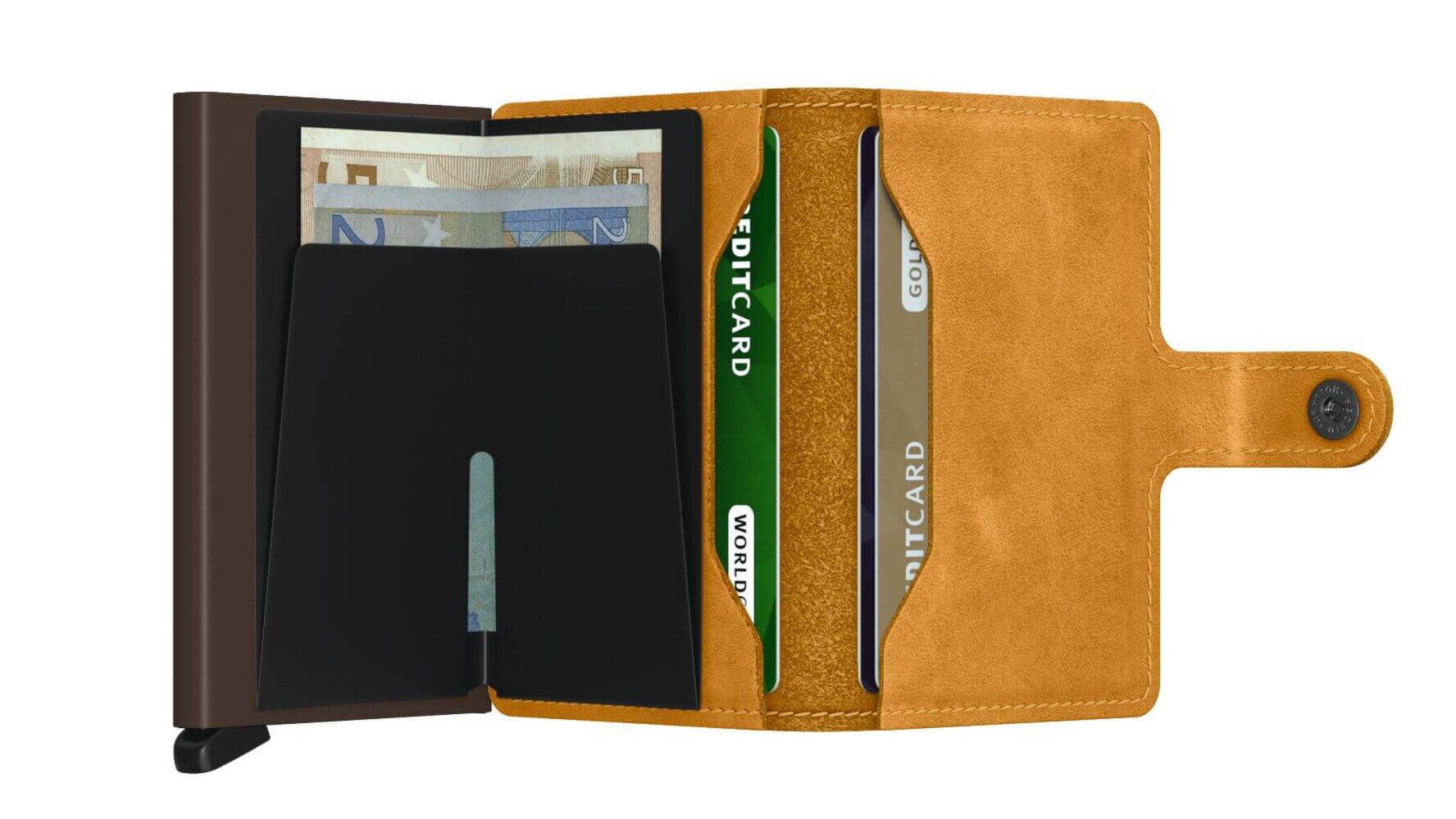 Smart miniwallet fra Secrid i farven ochre. Denne pung er genial, da den med sin lille størrelse har en overraskende stor kapacitet. Denne miniwallet kan rumme pengesedler, kvitteringer og kort.