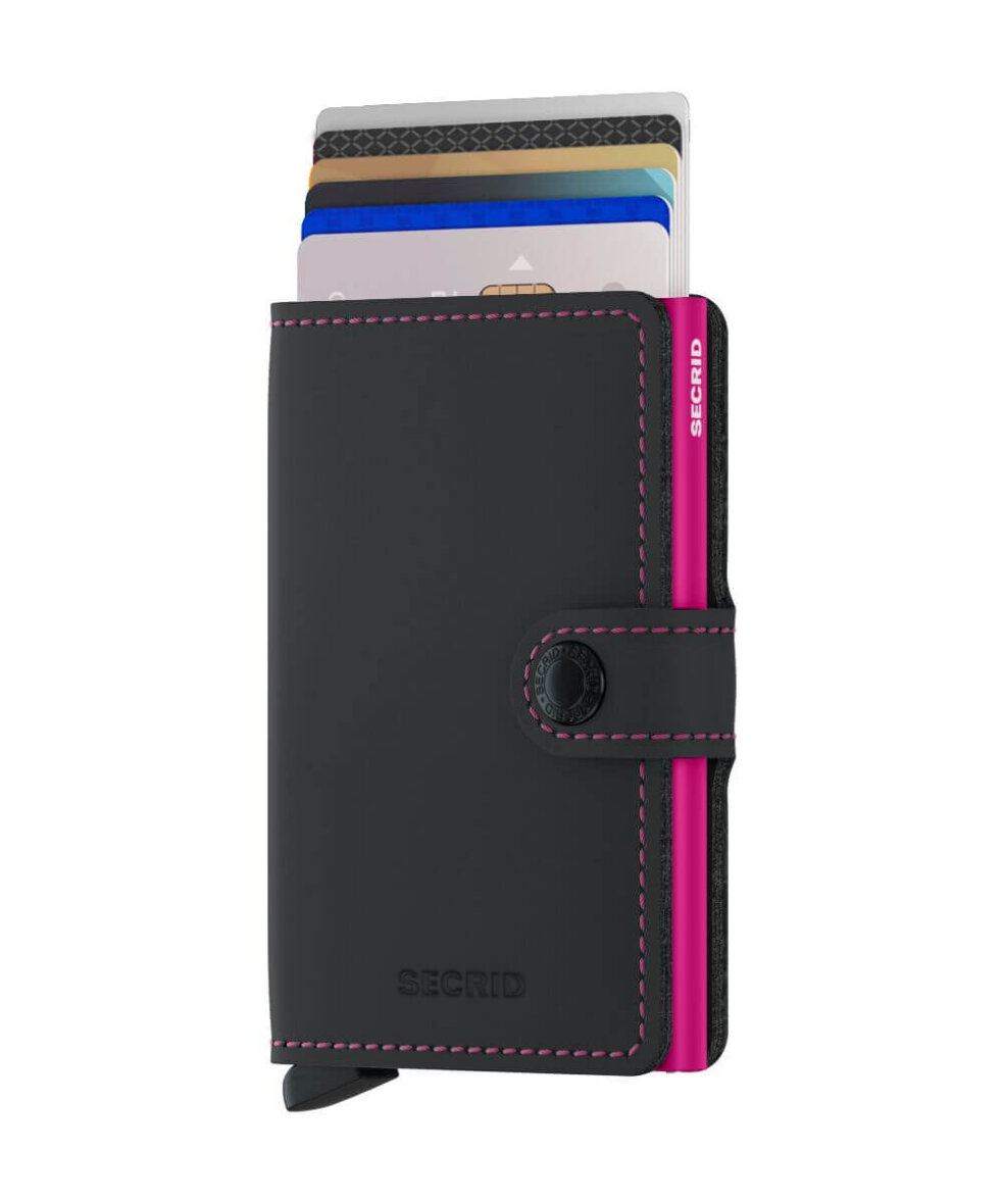 Smart miniwallet fra Secrid i farven Black & Fuchsia. Denne pung er genial, da den med sin lille størrelse har en overraskende stor kapacitet. Denne miniwallet kan rumme pengesedler, kvitteringer og kort.