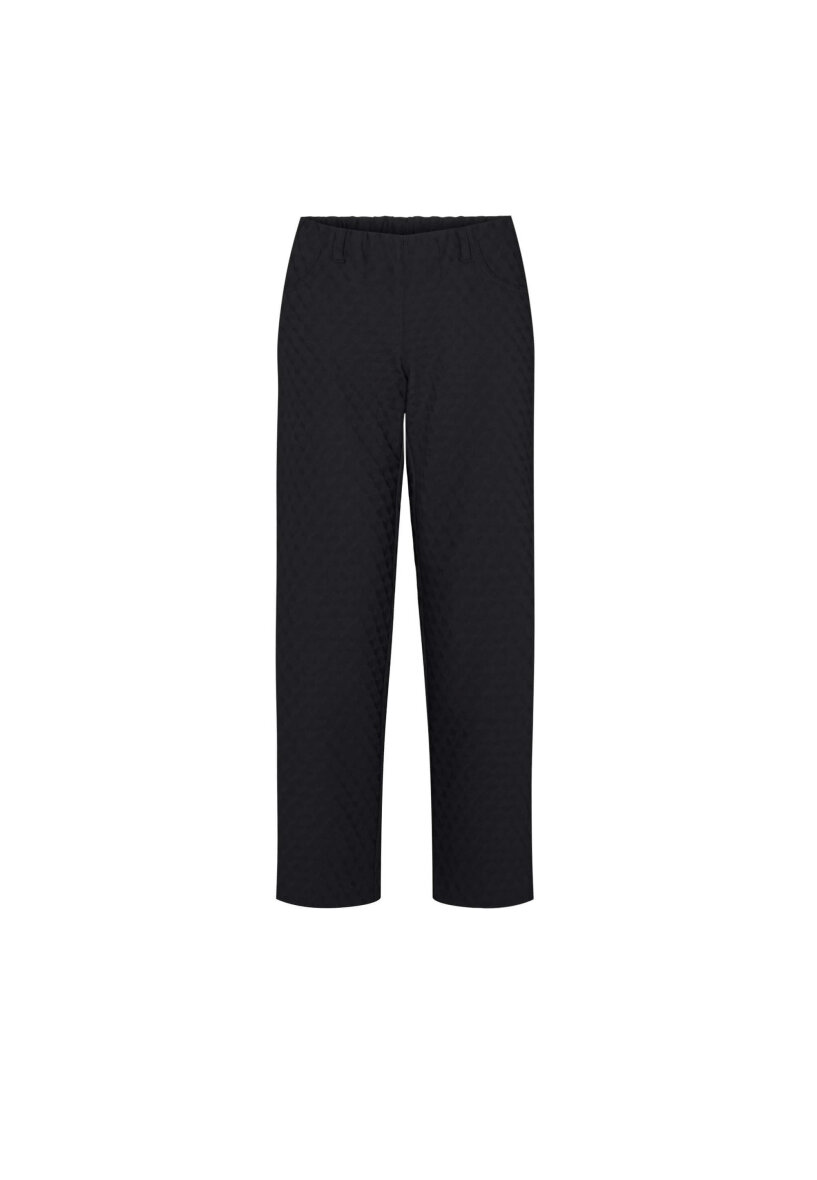 Sorte basis bukser i modellen Tracy Straight fra LauRie. Bukserne er lavet i et stilrent design med mønster i stoffet.