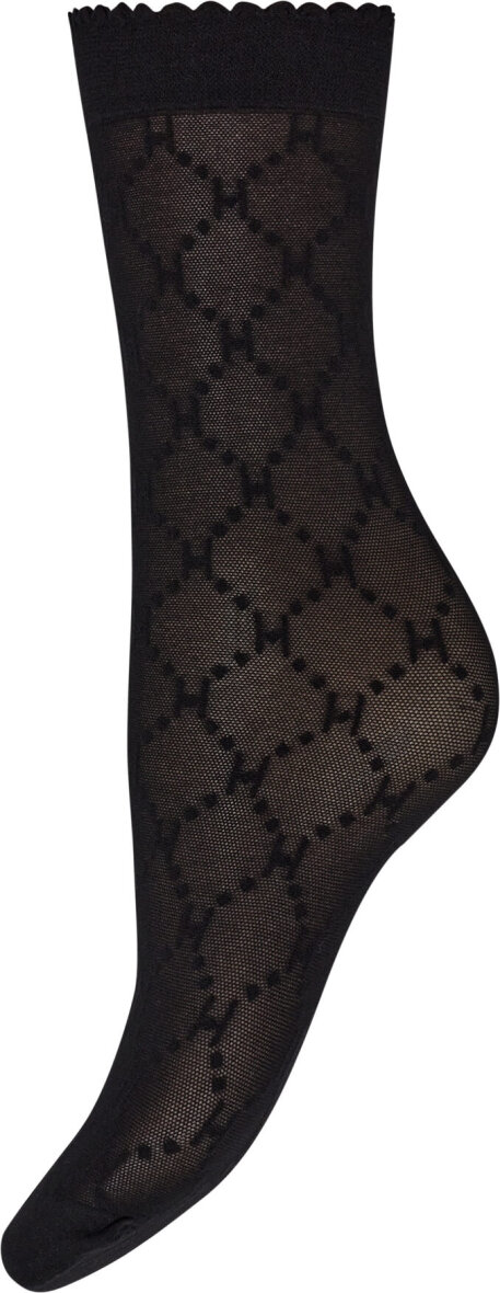 Flotte strømper i transparant nylon med logo tryk. Strømpen er i klassisk sort farvet bund med det klassiske HYPE logo i sort farvet tern samt matchende sorte kant øverst og ved tæerne, for at skabe en flot og diskret kontrast.