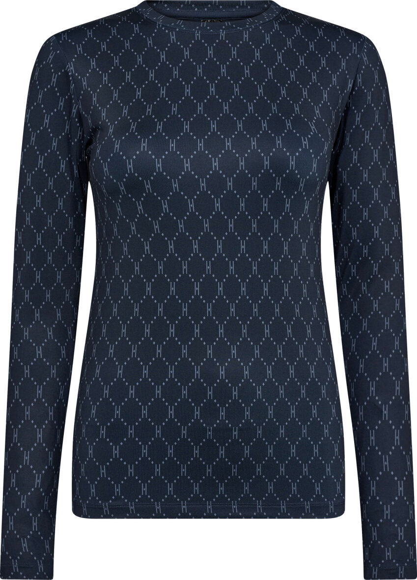 Lækker blød tætsiddende bluse fra Hype the Detail i en flot mørkeblå farve. Blusen har rund hals og lange ærmer. Blusen har det populære Hype the Detail logo mønster. Blusen har masser af stræk i materialet.