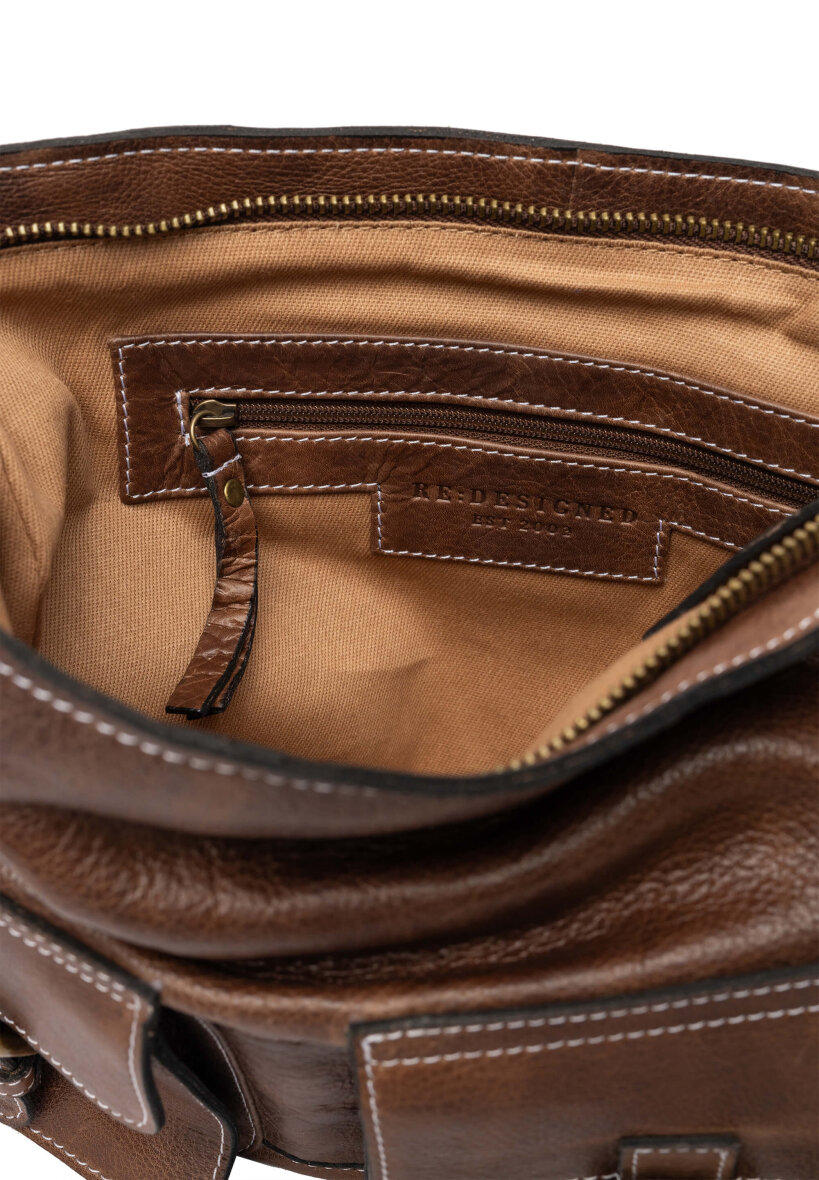 Tasken er lavet i en speciel Urban kvalitet. Dette betyder at tasken er af naturligt farvet kvæg-læder. Inden overfladen på produktet er færdiggjort behandles den med farvestof, for at bibeholde det originale kornmønster i det rå læder. Kvaliteten på Re:Designed produkter defineres af dets naturlige samt bløde udtryk og følelse, hvor hver taske er unik med individuelle særpræg. Tasken har efter behandlingen fået påført en let voks på overfladen, til at afvise snavs og andre væsker når tasken tages i brug. Med denne læder kvalitet bliver produktet kun smukkere og smukkere med tiden, da tasken skaber en naturlig patina i det rå skind som den bliver brugt.
