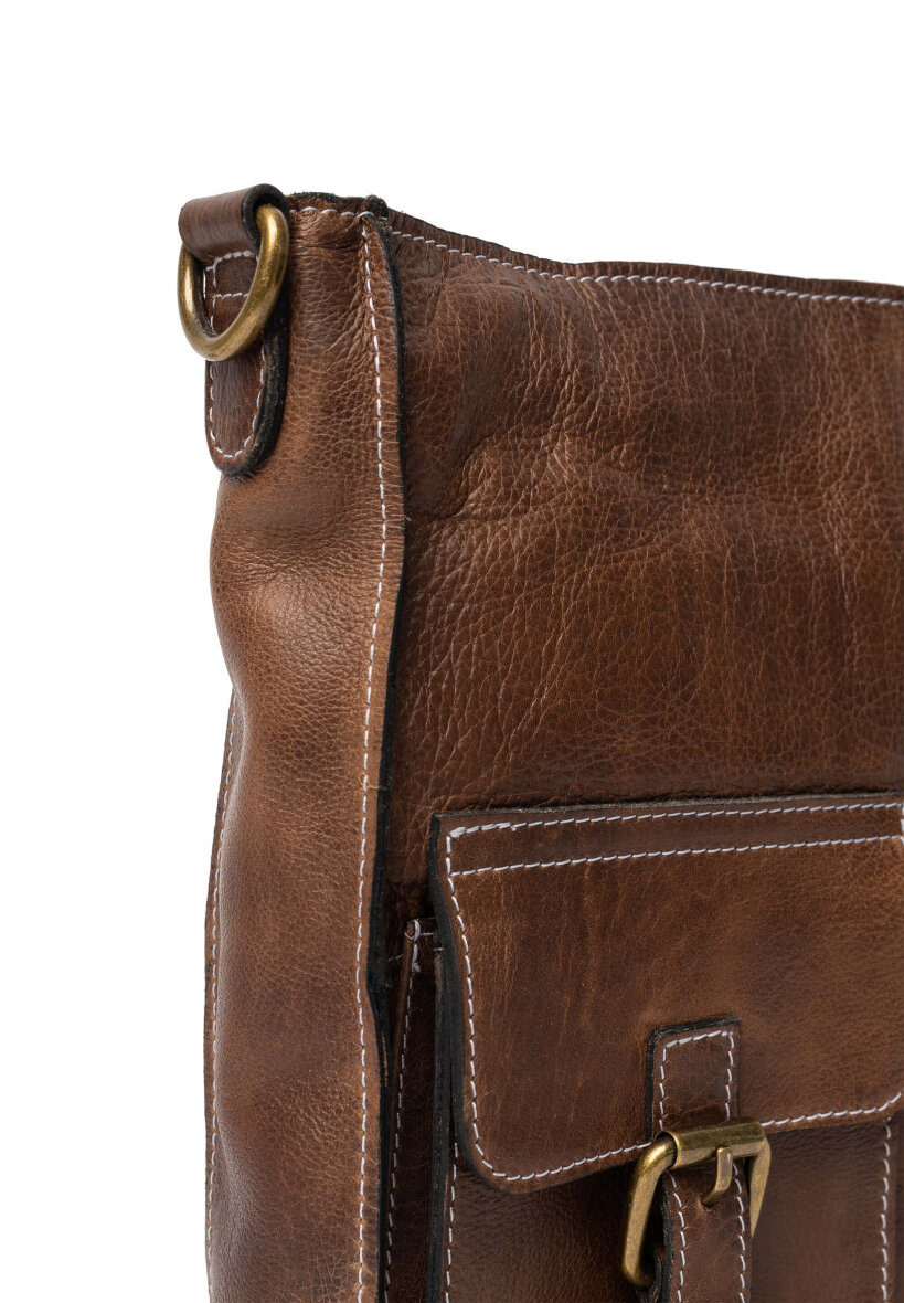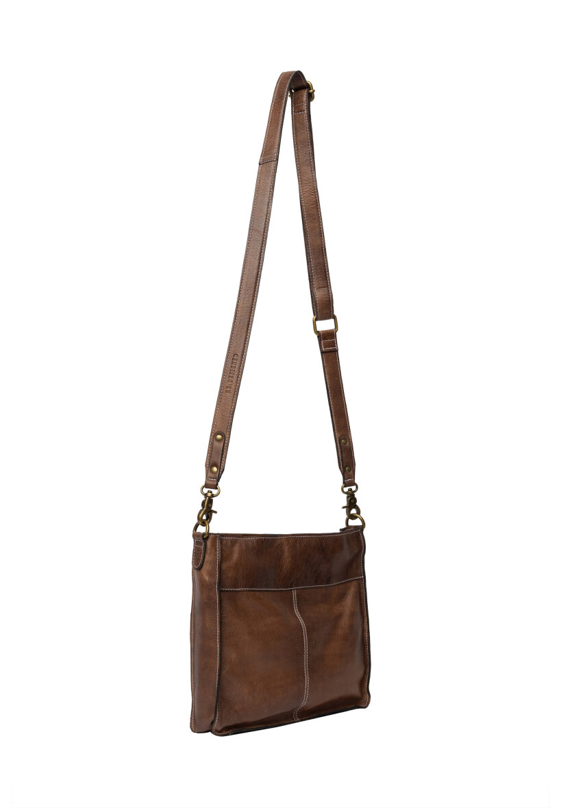 Tasken består af ét primært som lukkes med lynlås. Indvendigt har tasken små ekstra rum, så du nemt kan organisere dine ting. På fronten har tasken 2 smarte og dekorative lommer, som giver et fedt design. Tasken er med flere fine detaljer såsom det antikke messingbeslag og lynlås. Tasken er med justerbar rem.