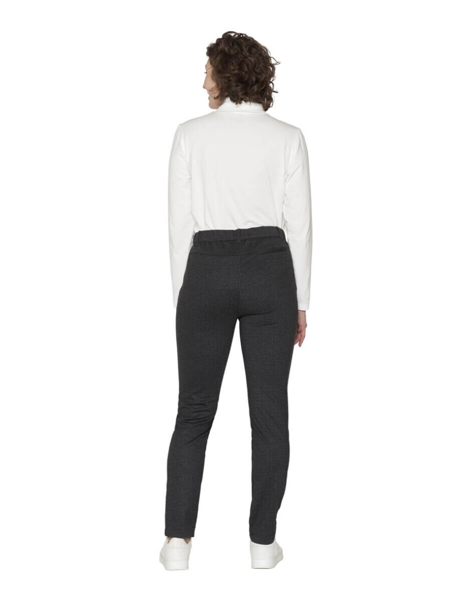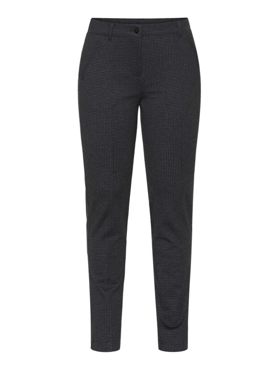 Smarte bukser fra Brandtex i et sort og gråt ternet design. Buksen er en slimfit model med elastik linning bag på.