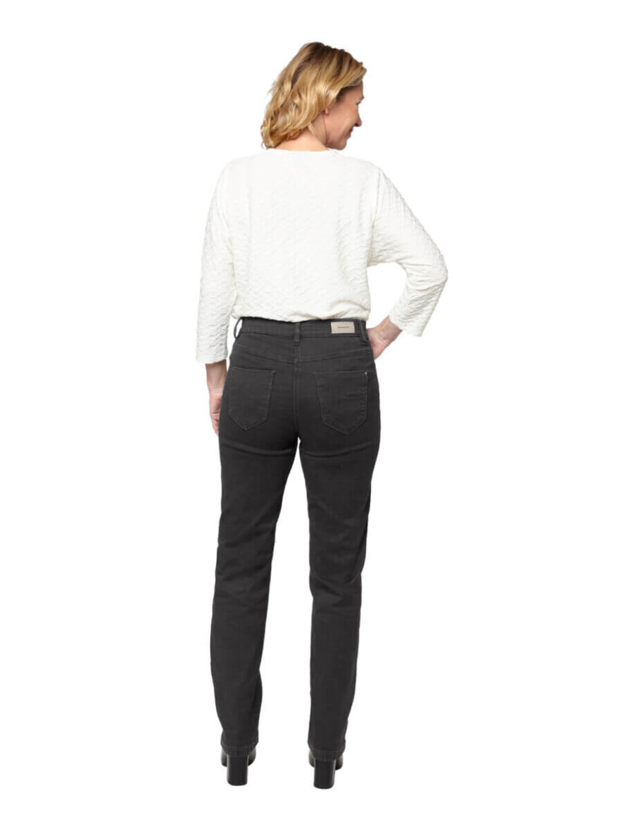 Buksen er lavet i en behagelig strækbar kvalitet. Lukkes med knap og lynlås. 5-lommer og bæltestropper.