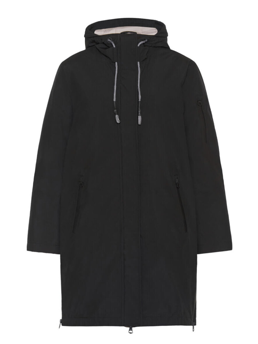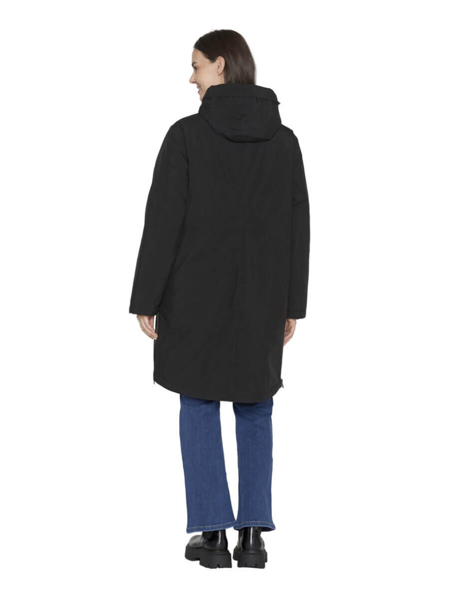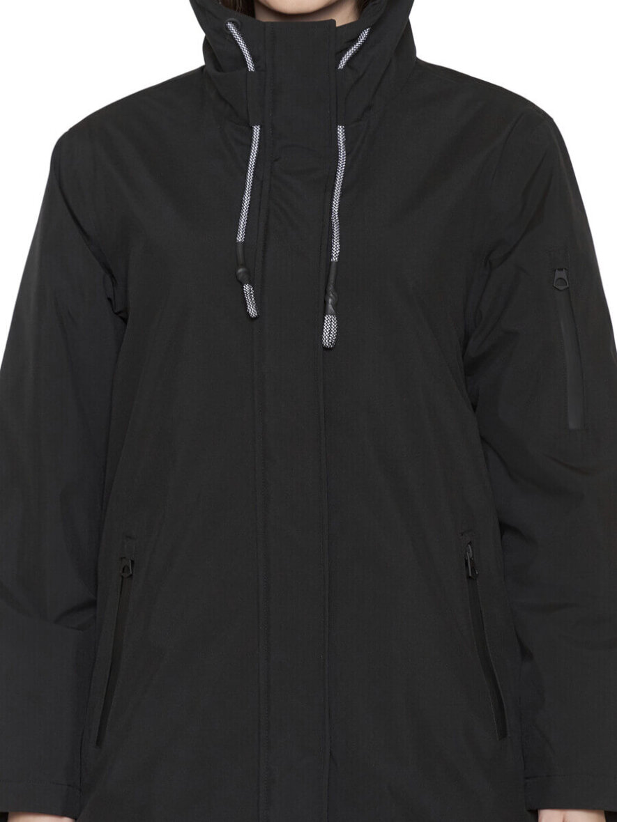 Smart knælang jakke fra Brandtex. Jakken er lavet i et klassisk sort design. Jakken er lavet i en 100% polyester kvalitet.