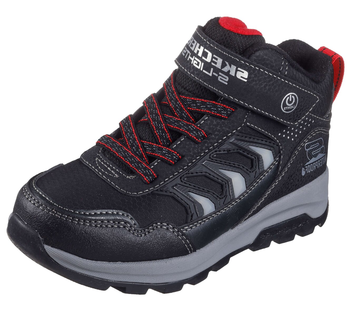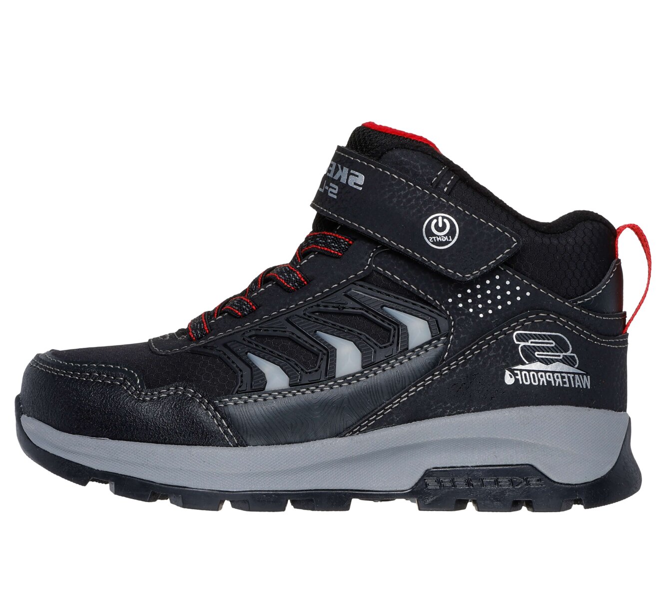 Smarte og praktiske støvler til drenge fra Skechers i modellen Storm Blazer - Glow Roam - Waterproof. De smarte støvler er lavet i et enkelt design med elastik snørebånd samt en justerbar velcrorem over vristen.