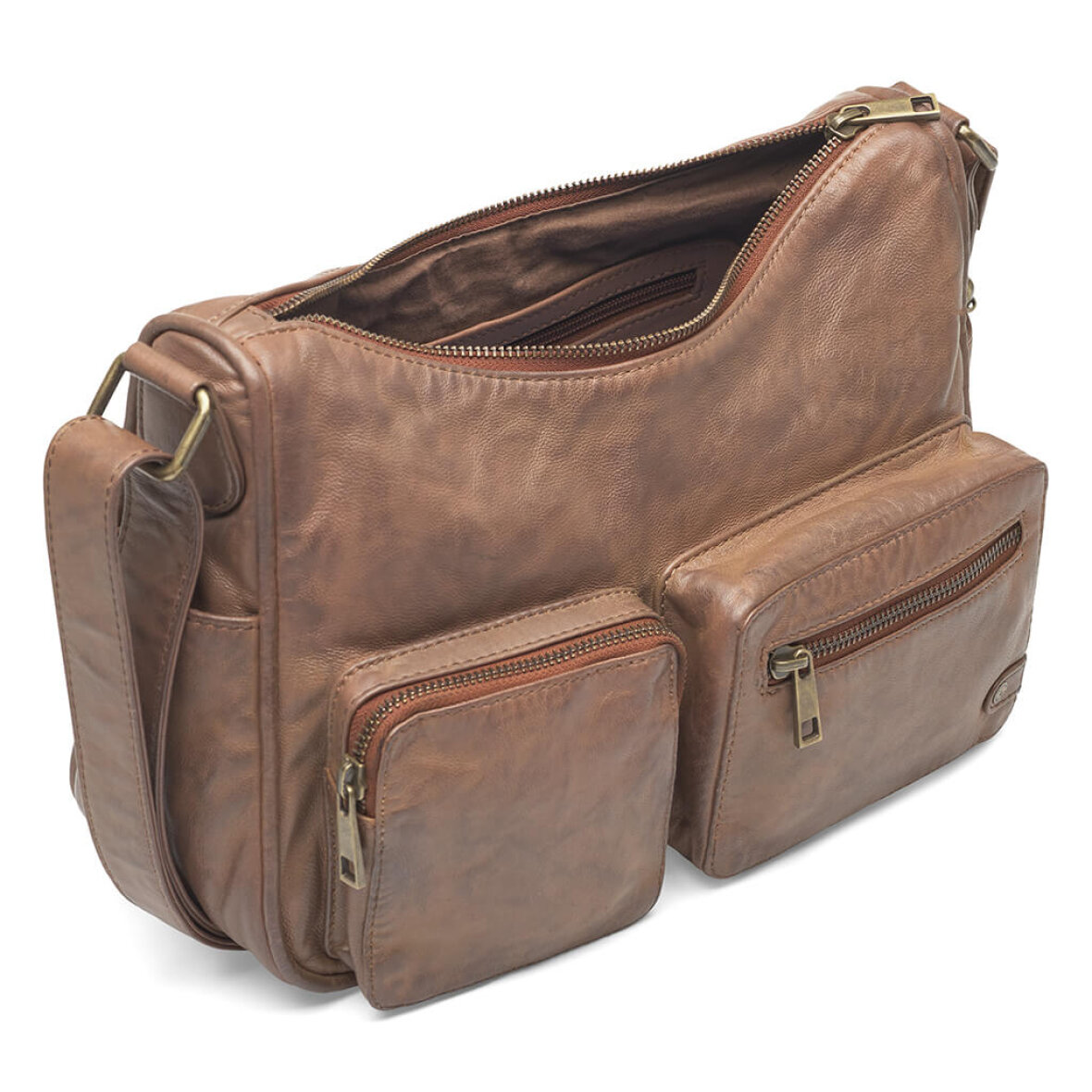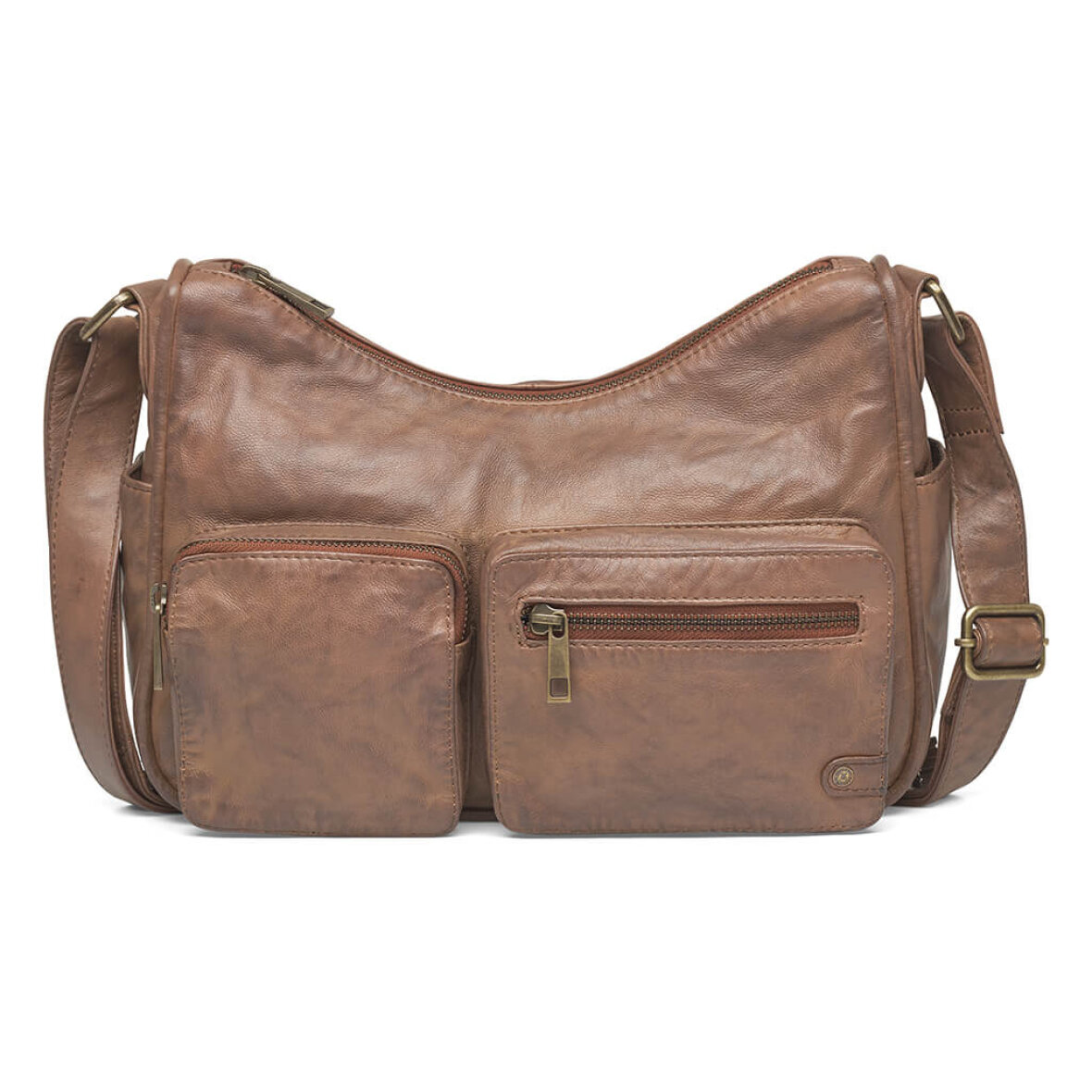 Tasken har et stort primært rum, hvor i der er en lille lynlås lomme. På forsiden af tasken er der to lynlåslommer, som giver ekstra opbevaringsmuligheder. Derudover har tasken en åben stiklomme i hver side af tasken, som er perfekt til hurtig tilgang til småting. Justerbar rem - bær tasken over skulderen eller som en crossover.