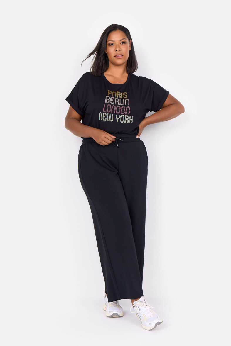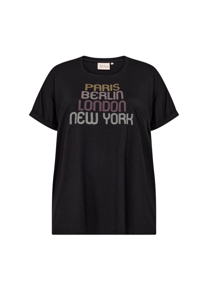 Flot sort t-shirt fra Wasabiconcept. T-shirten er lavet et fint og enkelt sort design med smart tekst print i guld og rosa.