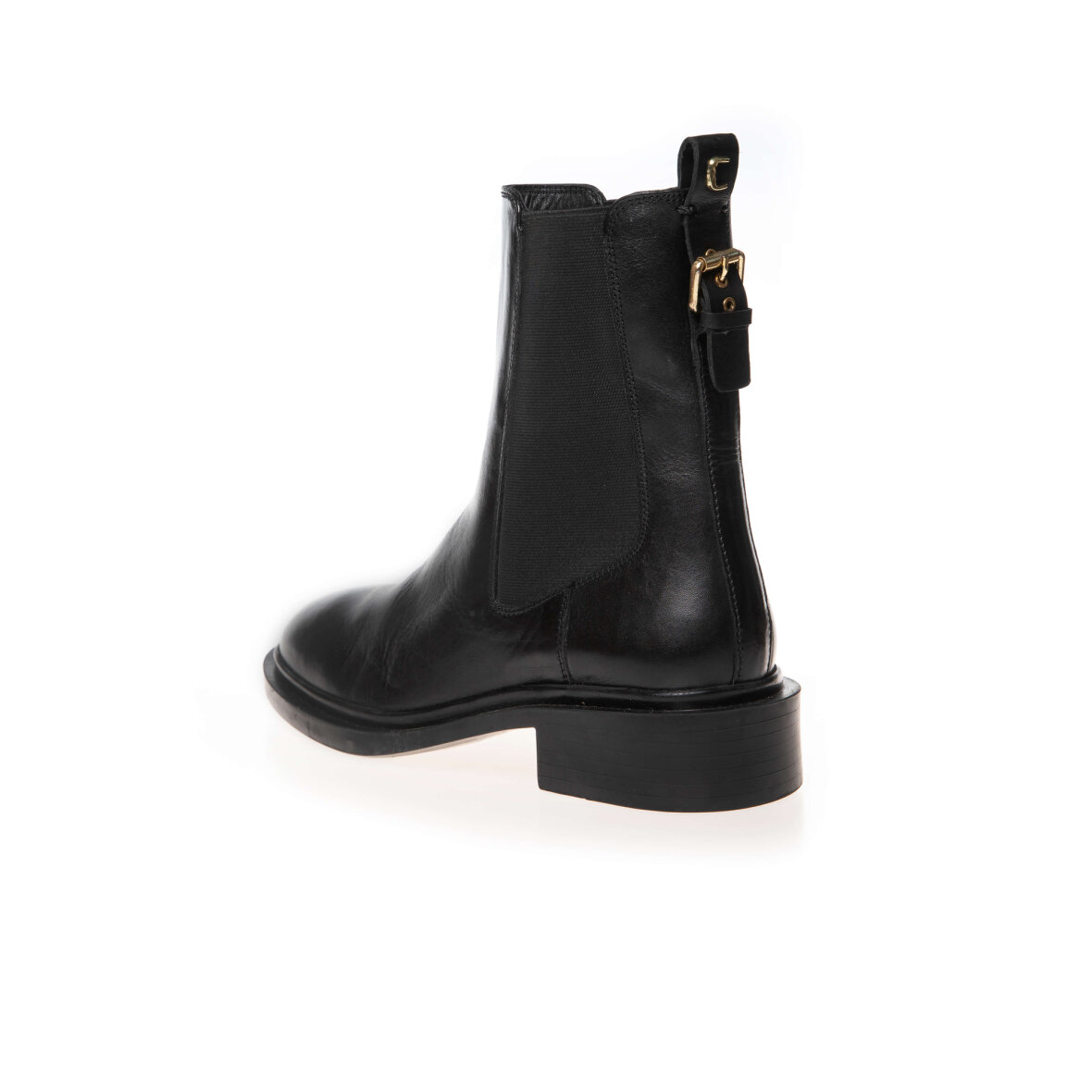 Flotte ankelstøvler fra Copenhagen Shoes. Støvlen er lavet i sort blødt skind i et klassisk og tidsløst design. Bag på støvlen har støvlen en fed guld spænde detalje samt et guld "c".