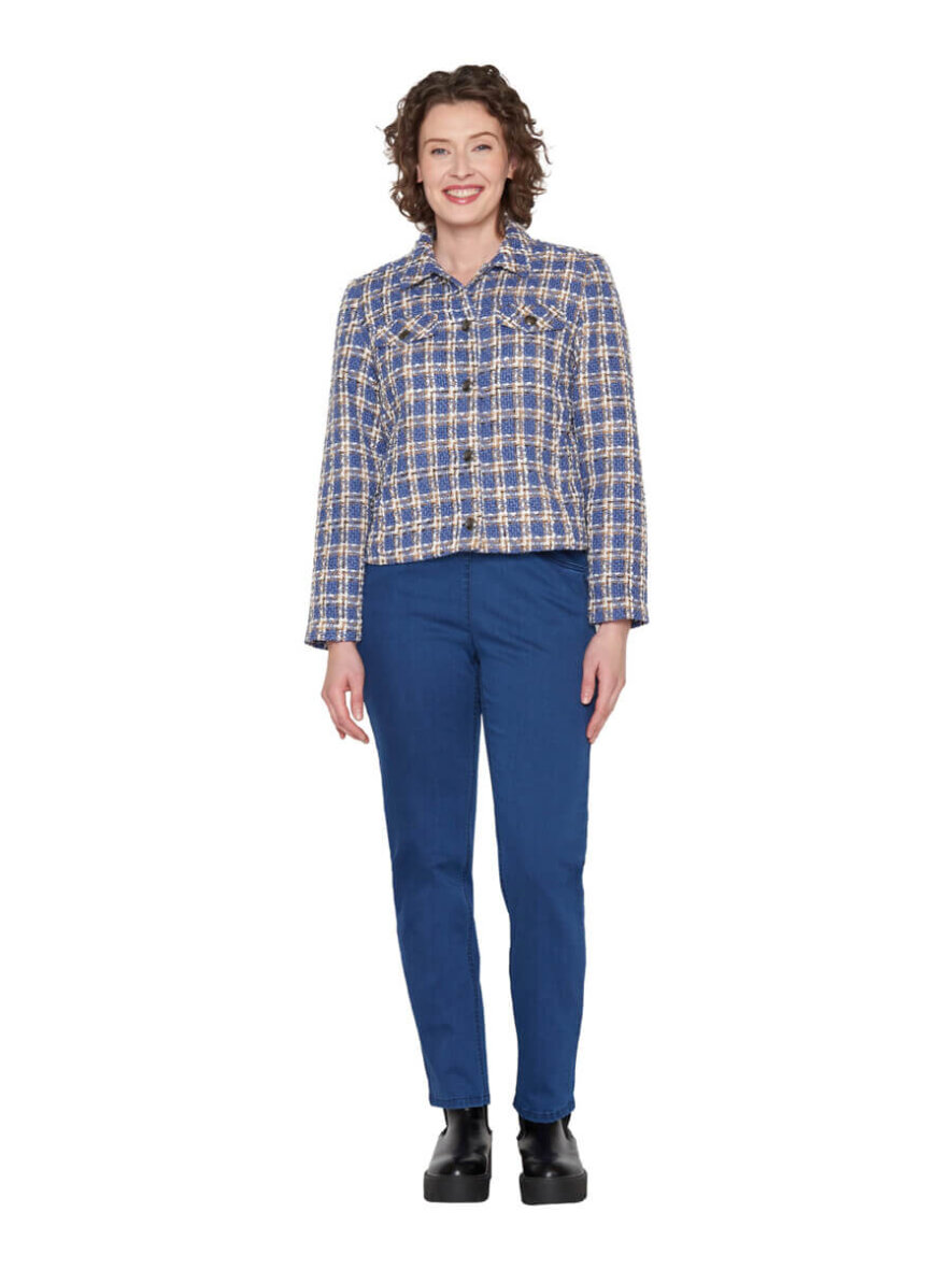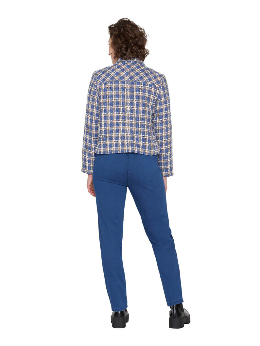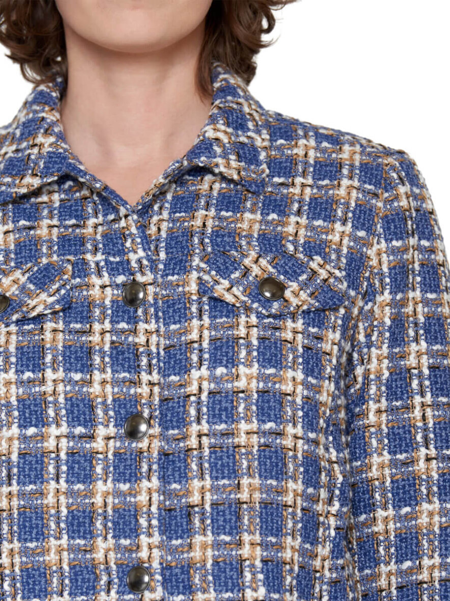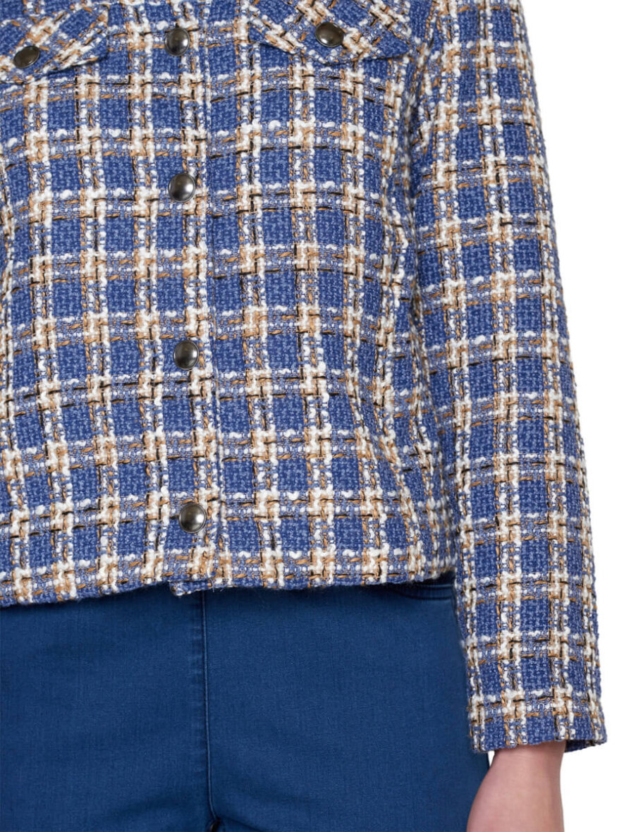 Flot og elegant kort jakke fra Brandtex. Jakken er lavet i et flot ternet design i blå, hvid og brun. Det ternede tråd design giver et flot og eksklusivt look.