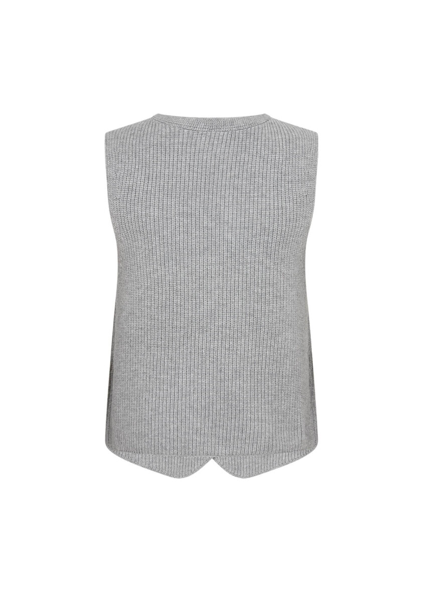 Lækker strikket vest fra Soyaconcept i en lækker blød kvalitet. Vesten er lavet i et enkelt og flot gråt strikket design.