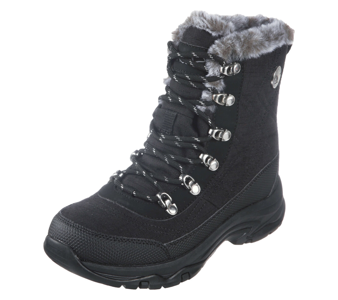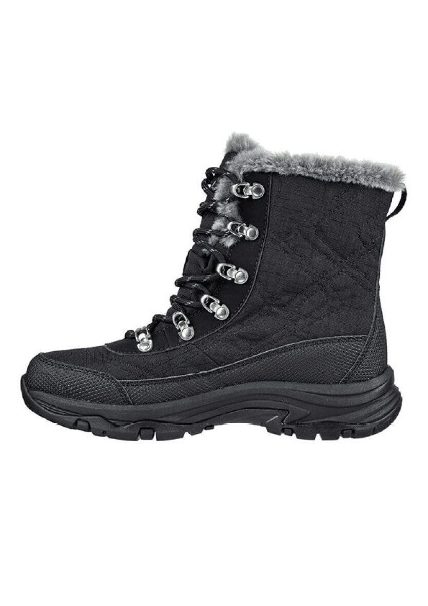 Smart vandtæt outdoor støvle til kvinder fra Skechers. Støvlens vandtætte overdel er lavet i en blanding af syntetmateriale og mesh tekstil. En blød og dekorativ syntetisk pelskant.