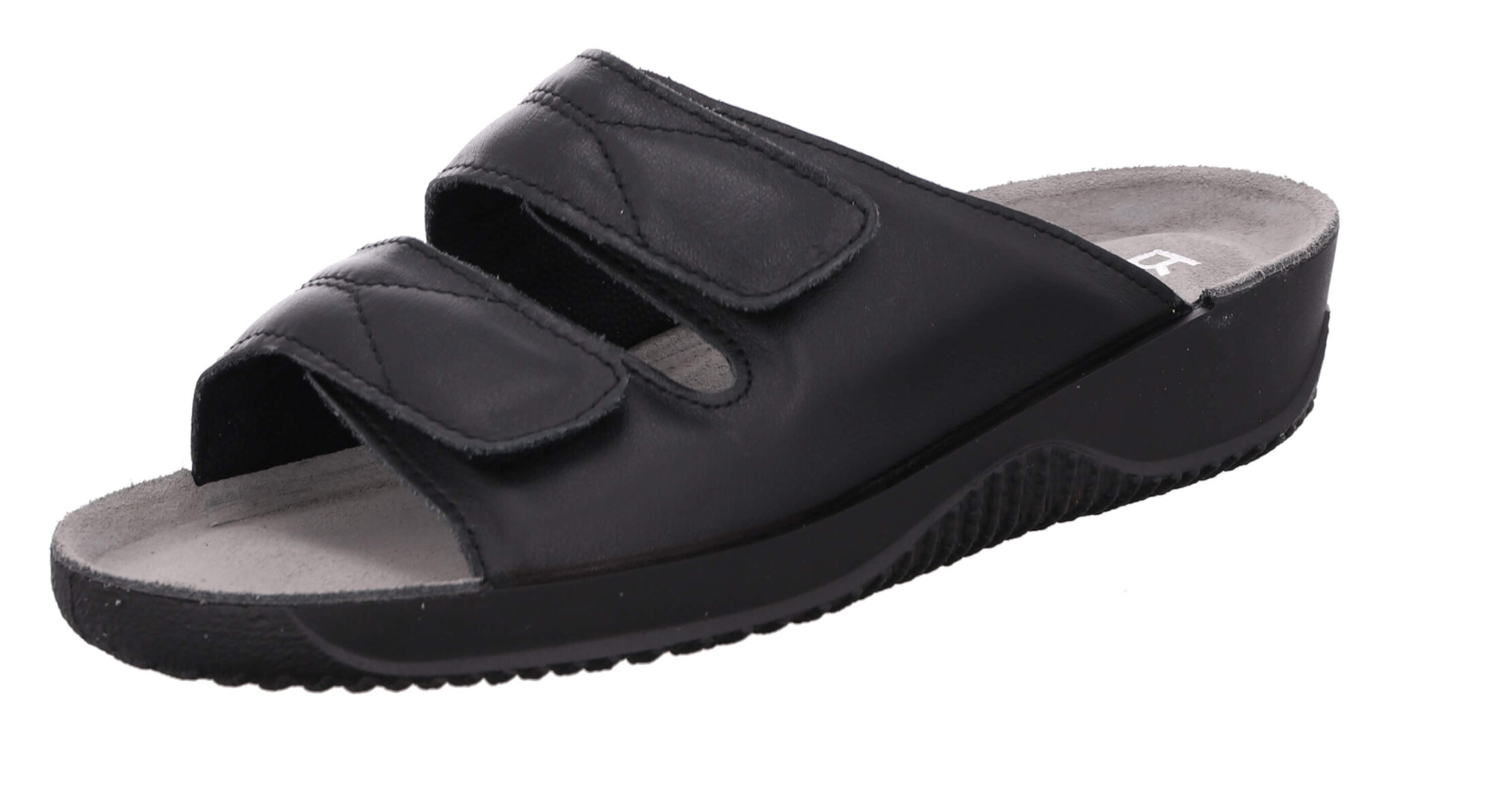 Enkle sandaler fra Rohde i et klassisk sort design. Sandalen er lavet i en slippers model med 2 remme.