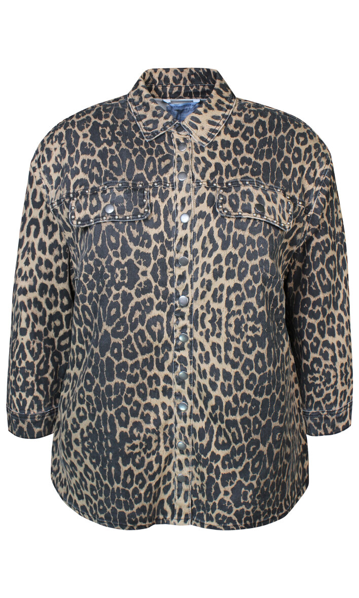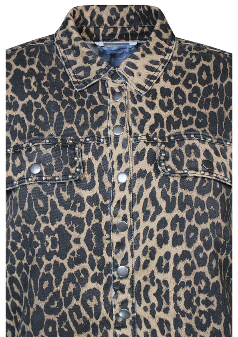 Smart og stilfuld jakke fra Zhenzi. Jakken er lavet i et moderne leopardprint med rå detaljer ved lommerne.