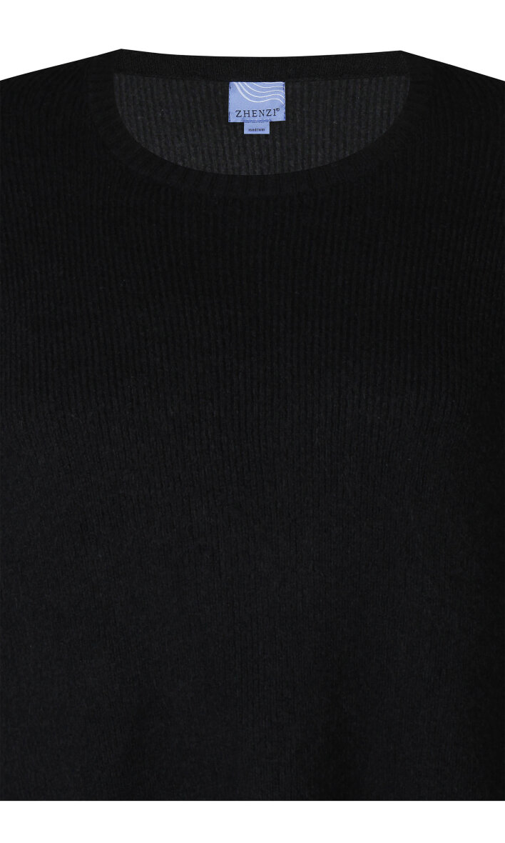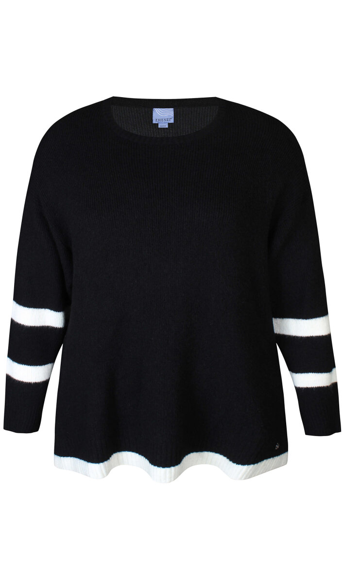 Flot og enkel stiktrøje fra Zhenzi. Striktrøjen er lavet i et klassisk sort design med hvide horisontale striber.