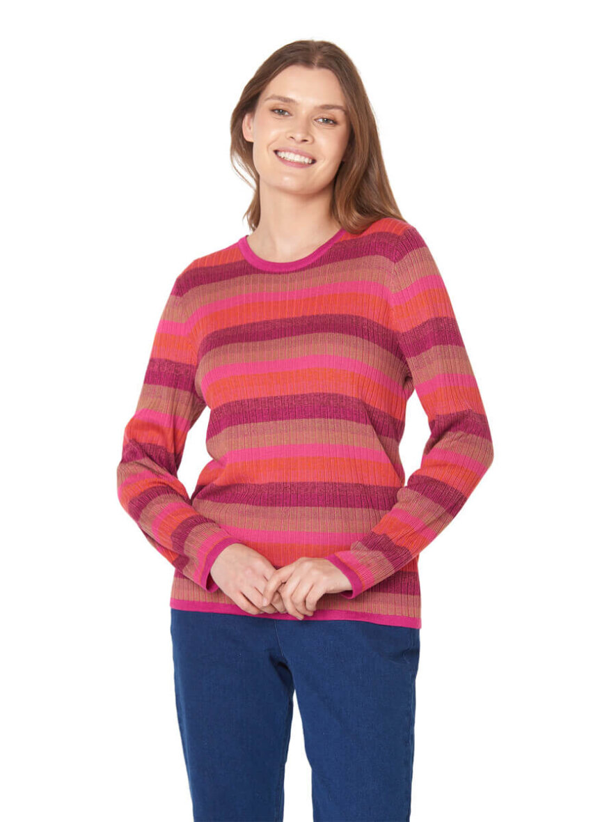 Flot og farverig striktrøje fra Signature. Striktrøjen er lavet i en frisk pink farve i et smart stribet mønster.