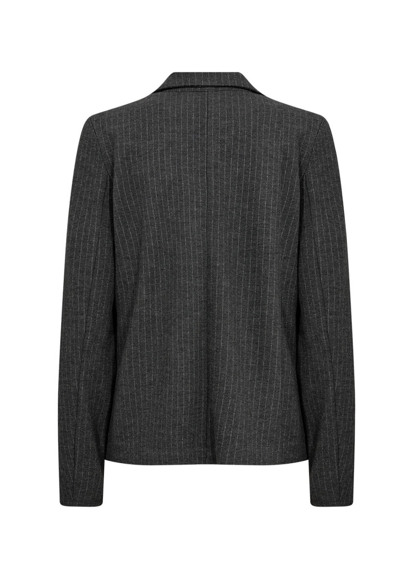 Klassisk blazer fra Soyaconcept i et flot gråt stribet design. Blazeren er med flot revers og lange ærmer. Blazeren lukkes med to knapper foran eller kan bruges som en åbenstående blazer.