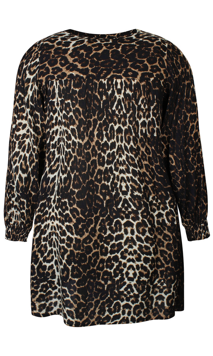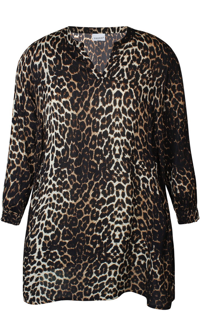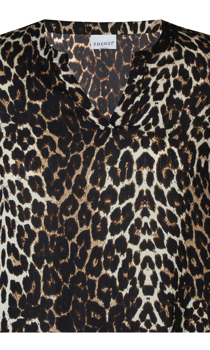 Smuk og stilfuld kjole fra Zhenzi i modellen ZG-NIKI 885. Kjolen er lavet i det smukkeste leopard print i en mørk tone.