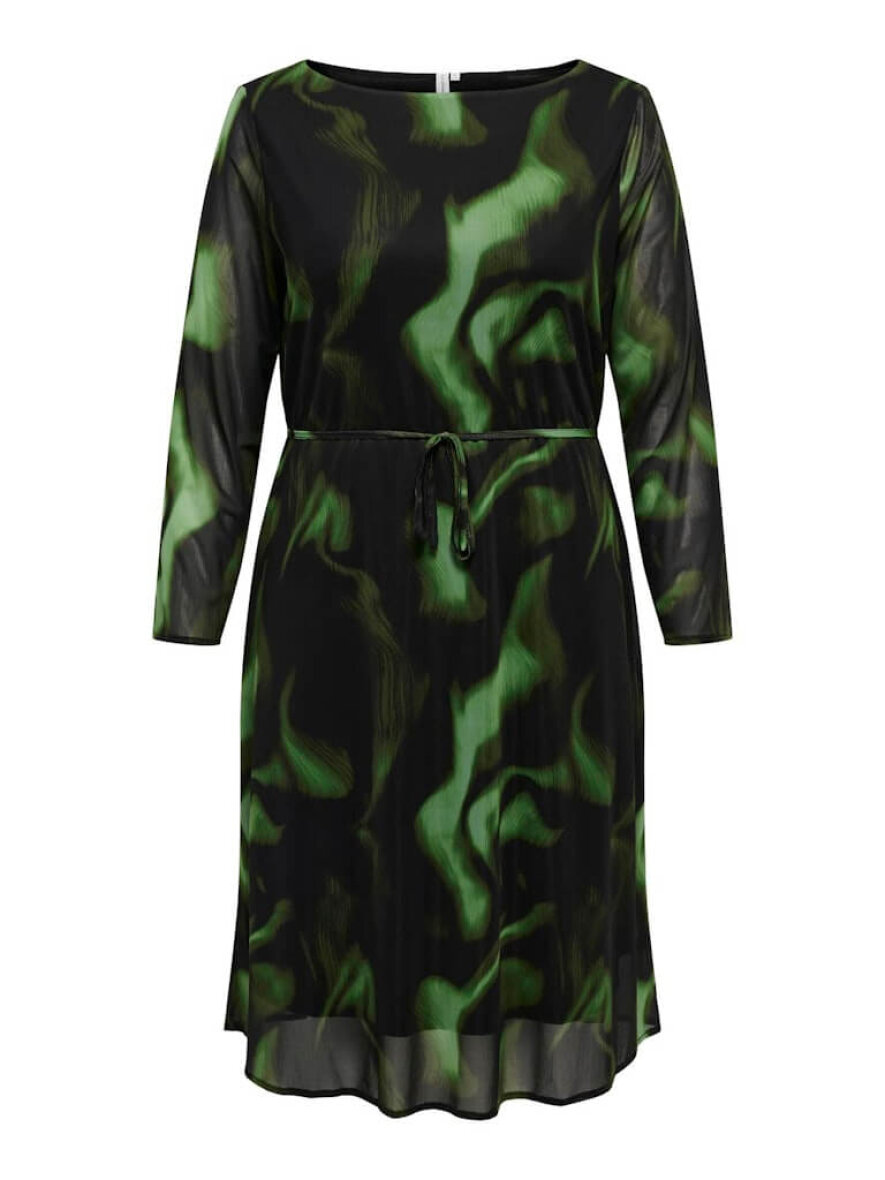 Smuk halvlang kjole i et skønt print fra Only Carmakoma. Kjolen er lavet i et smart grafisk print i sort og grøn.