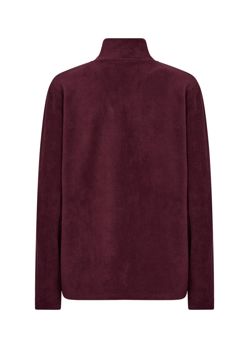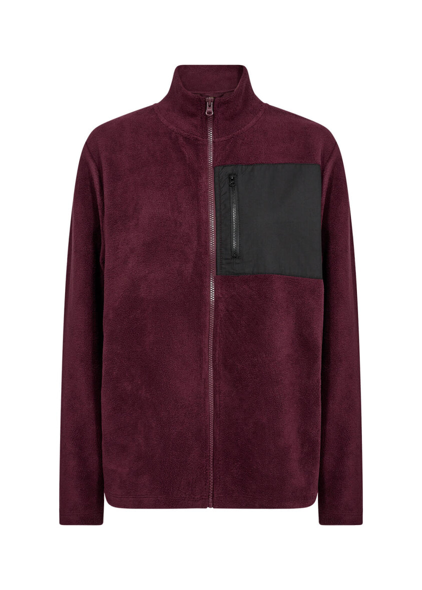 Smart og blød fleece jakke fra Soyaconcept i efterårets moderne vinrøde farve. Jakken er med høj hals, lange ærmer og gennemgående lynlås. Denne model er lavet med en brystlomme med lynlås samt to skrå åbne lommer.