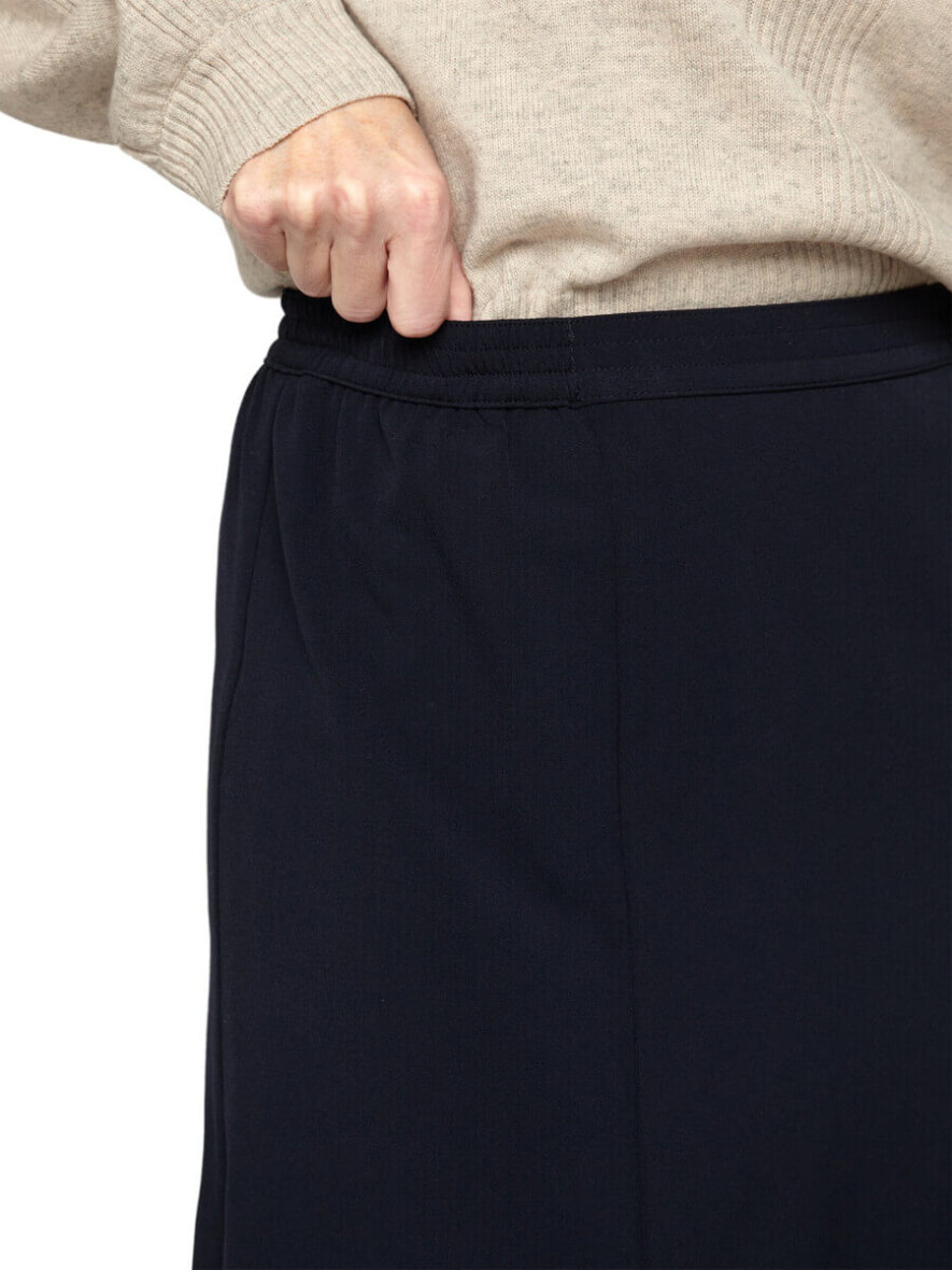 Flot klassisk sort nederdel fra Brandtex. Nederdelen er lavet i et enkelt design med elastikkant, så den kan sidde godt til i taljen.