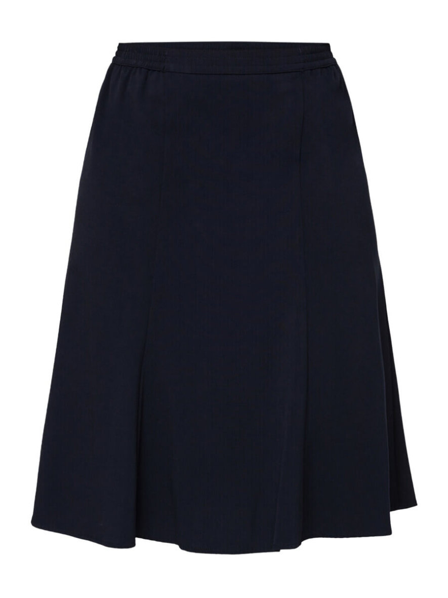 Nederdelen er lavet i en klassisk A-facon, som passer godt til de fleste kropstyper. Nederdelen er med et flot snit foran og på bagpå. Nederdelen er med påsyet underkjole i 100% Polyester. Nederdelen er lavet i et dejlig blødt materiale, som gør at den er yderst behagelig at have på.