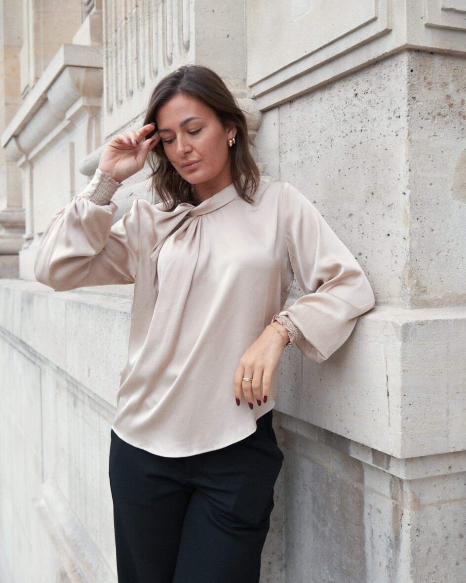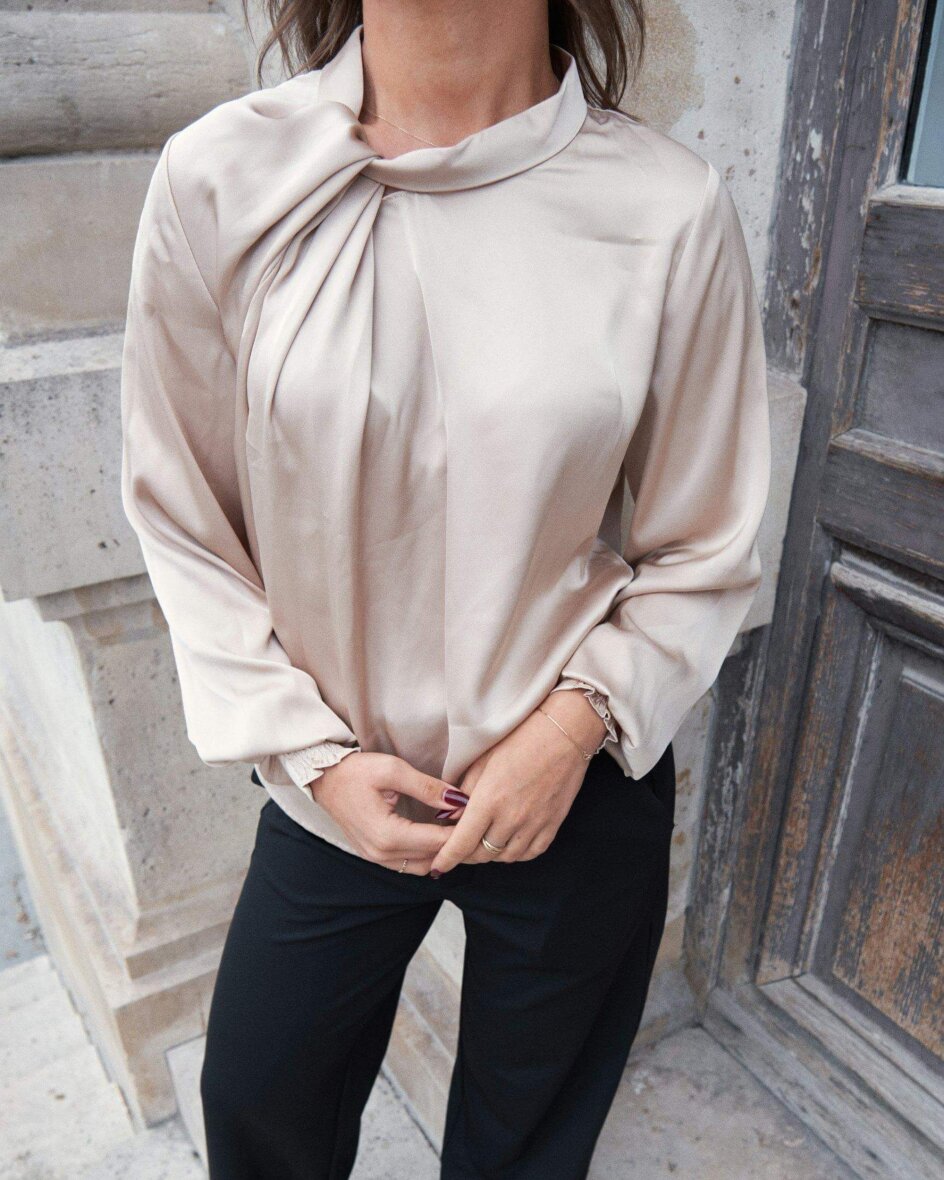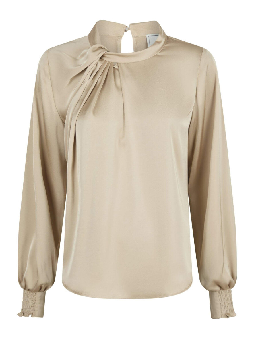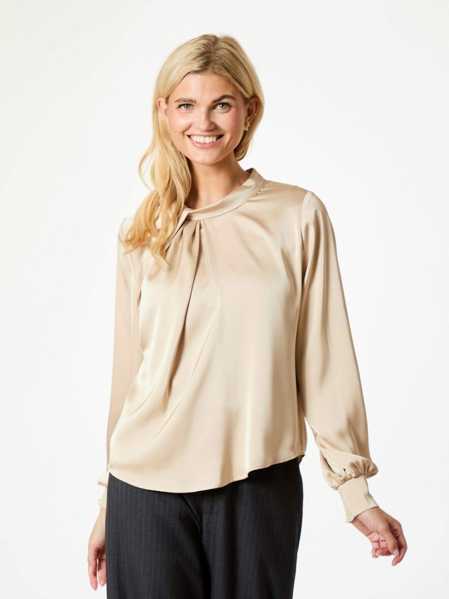 Flot og feminin bluse fra Neo Noir den smukkeste champagne farve. Fairy Drapy satin blusen er som navnet antyder lavet i den lækreste satin kvalitet, som er med til at skabe et elegant og festligt look.