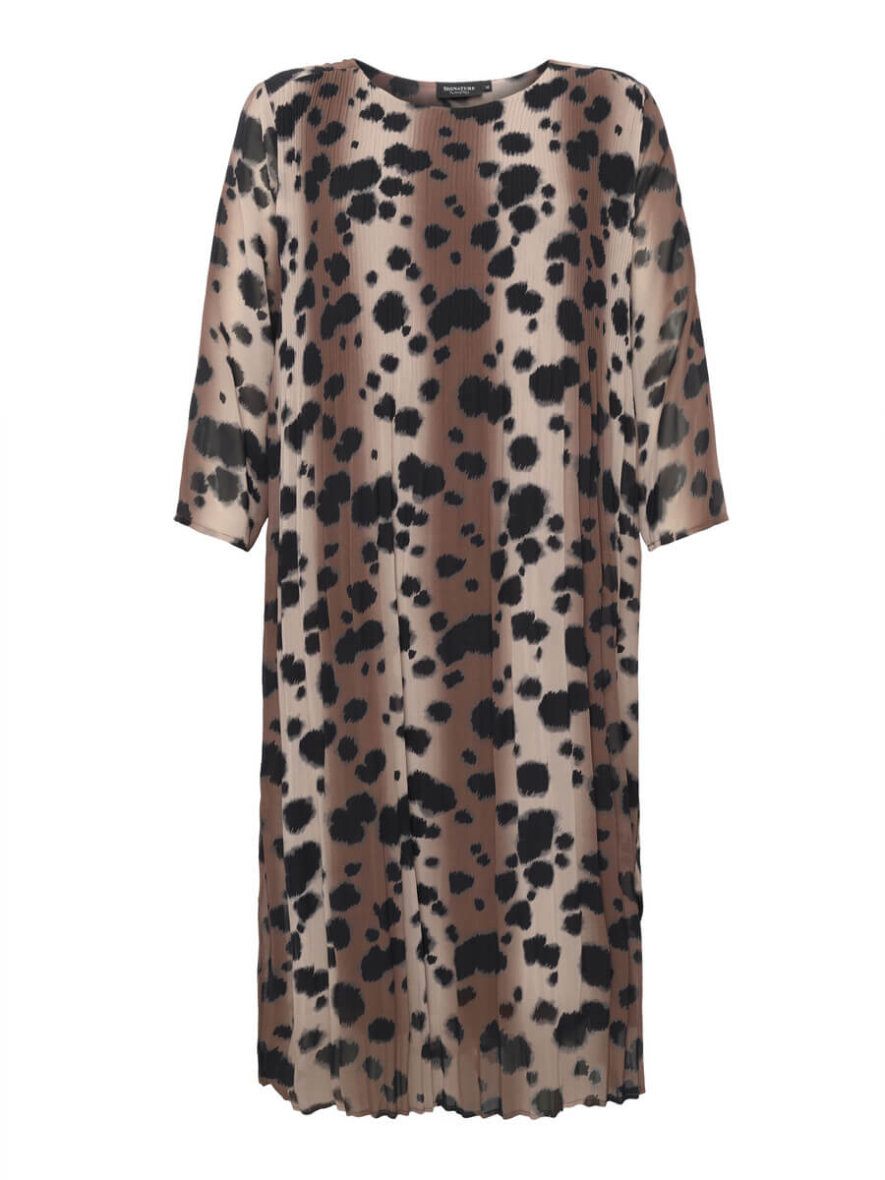 Smuk mellem lang kjole fra Siganture. Kjolen er lavet i et smukt leopard print i et plisseret design.