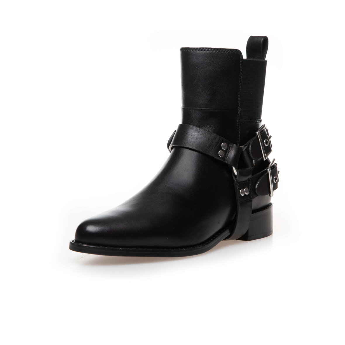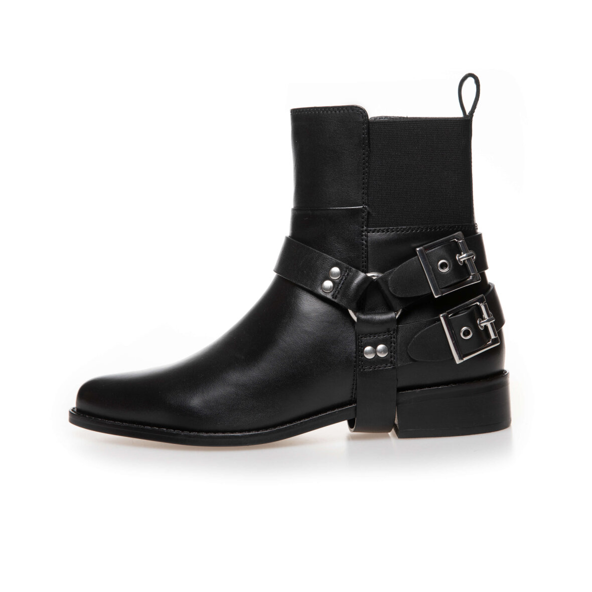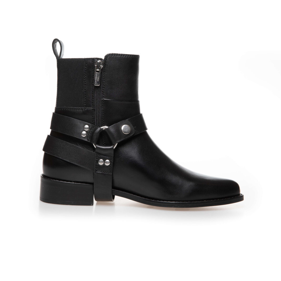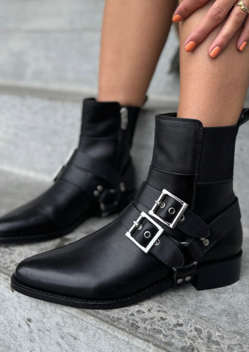 Flotte ankelstøvler fra Copenhagen Shoes i modellen "Make me fly". Støvlen er lavet i sort blødt skind i et råt design med sølv spænder.
