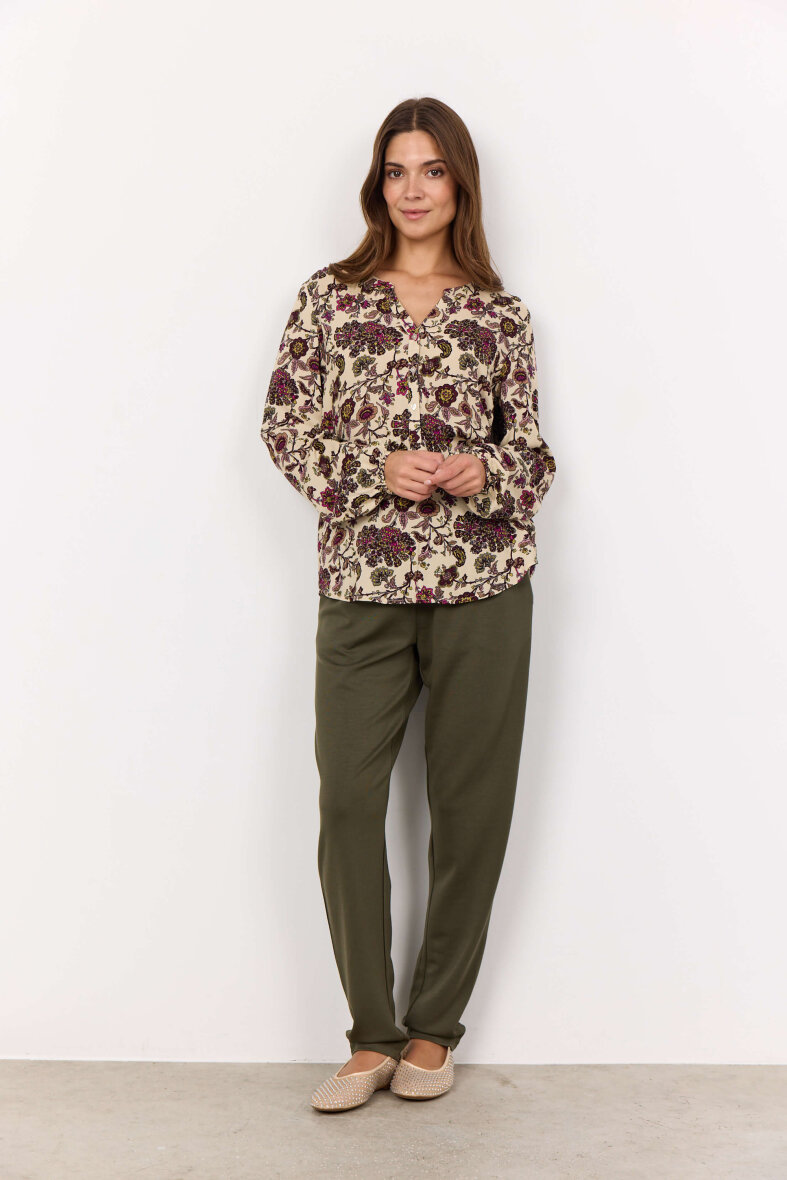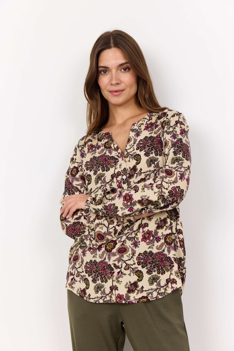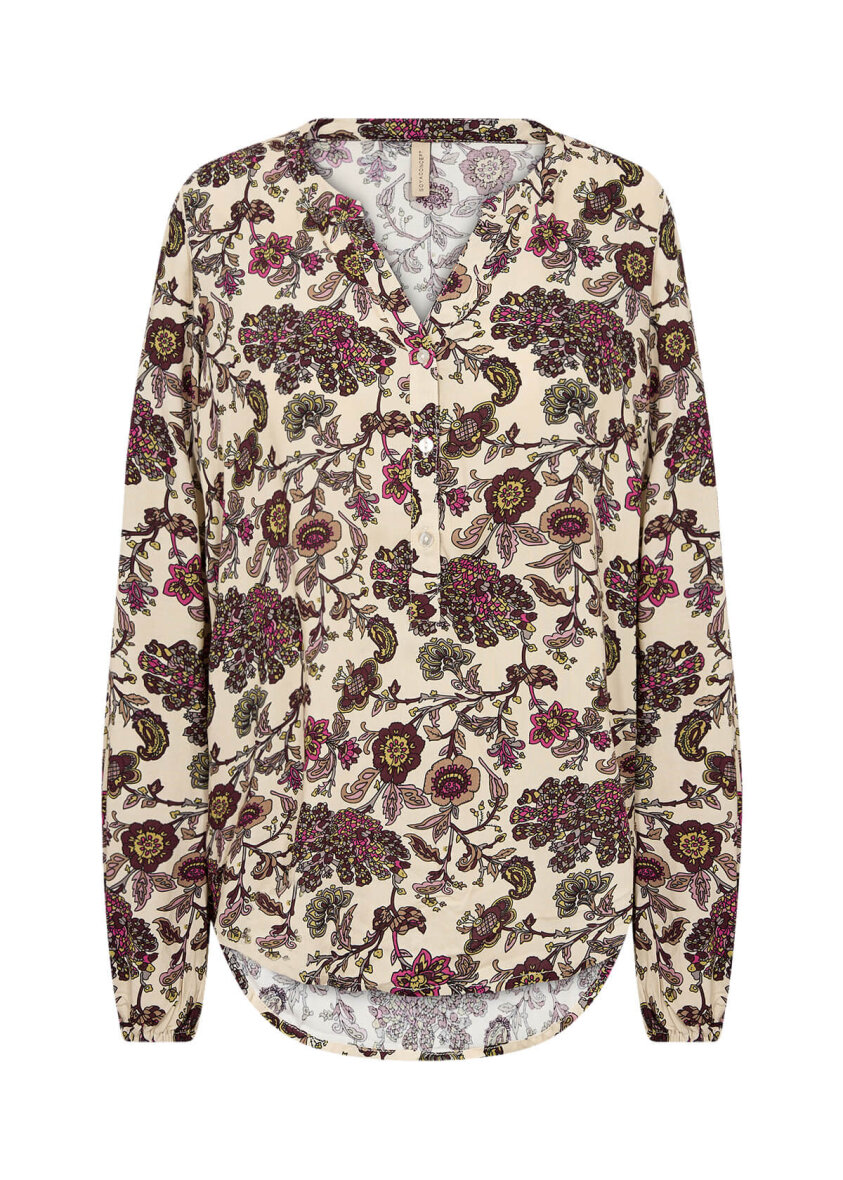 Flot og feminin bluse fra Soyaconcept. Blusen er lavet i et flot og farverigt blomster print.