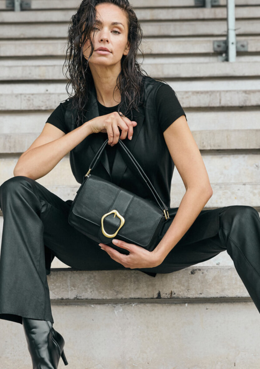 Elegant taske fra Depeche i et klassisk sort design med en dekorativ guldspænde på fronten. Tasken er lavet i en god og bød kvalitet i 100% okselæder, som giver et eksklusivt touch.