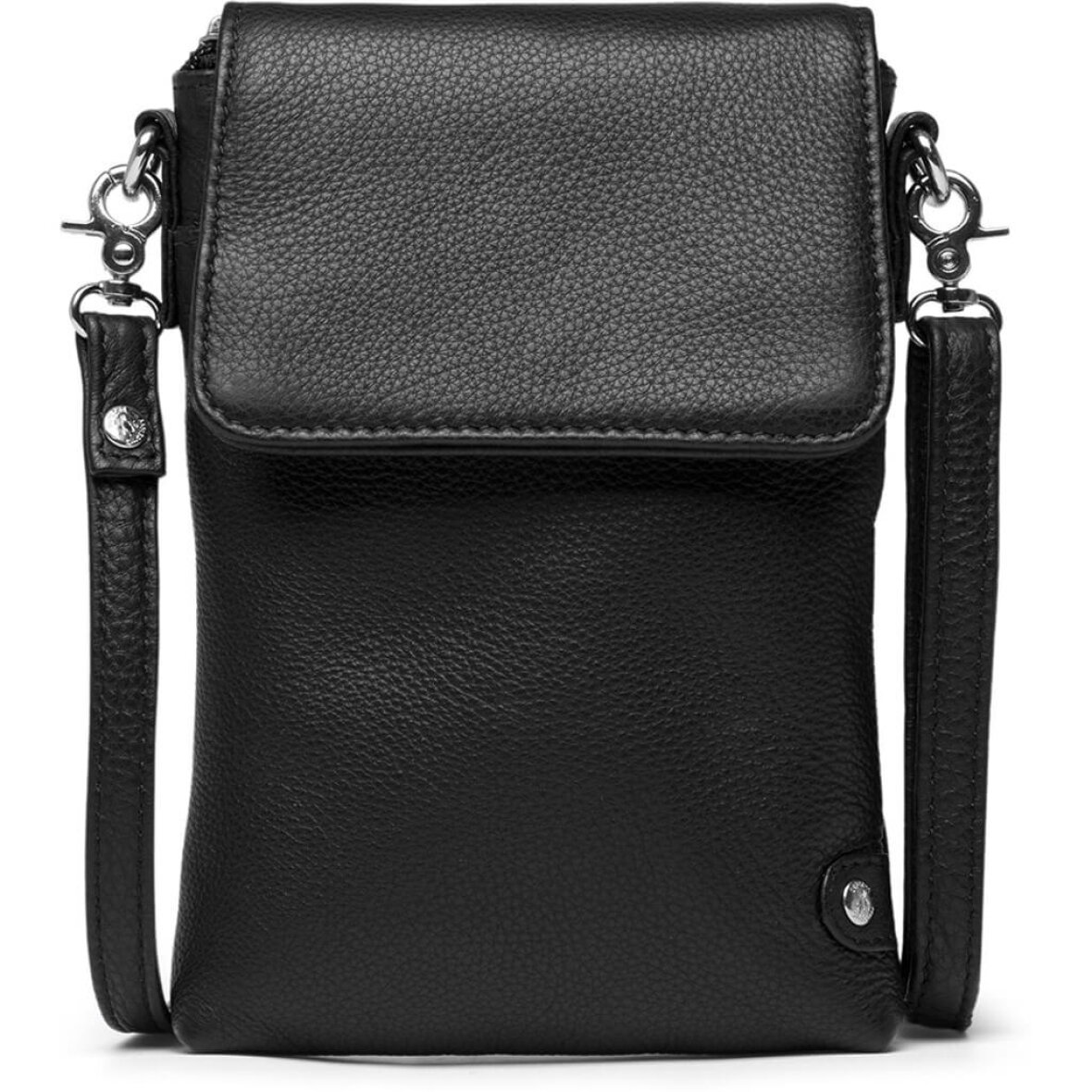 Smart og elegant mobiltaske fra Depeche. Tasken er fremstillet i en lækker blød kalveskinds kvalitet i en klassisk sort farve som nemt kan styles til ethvert outfit.