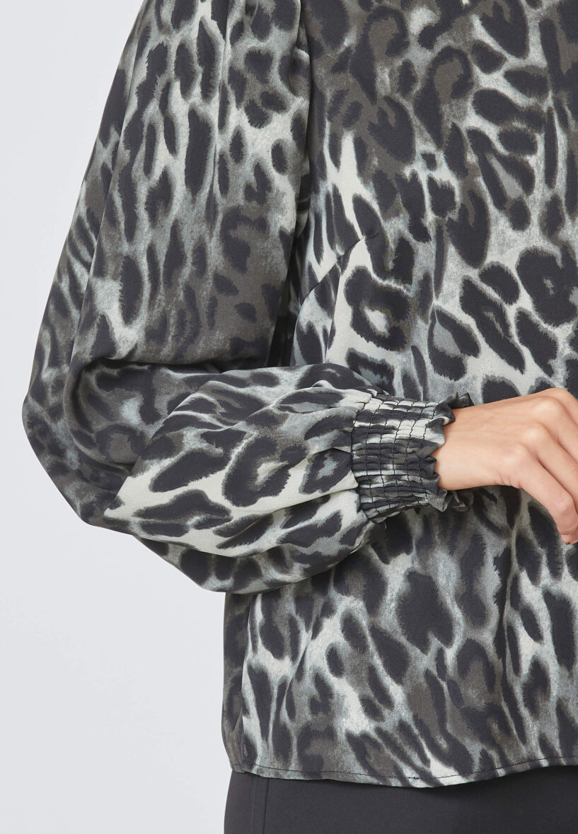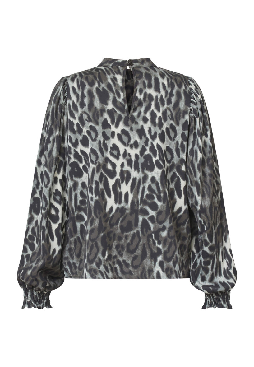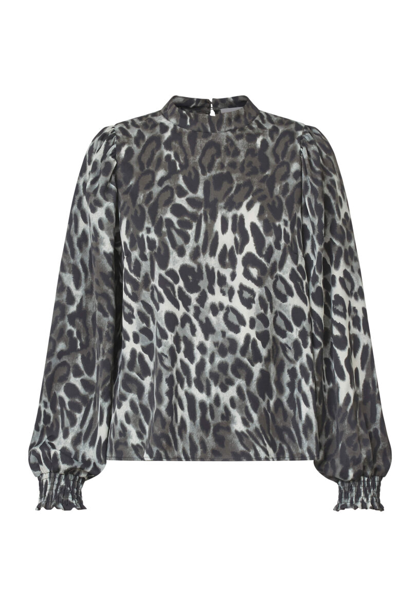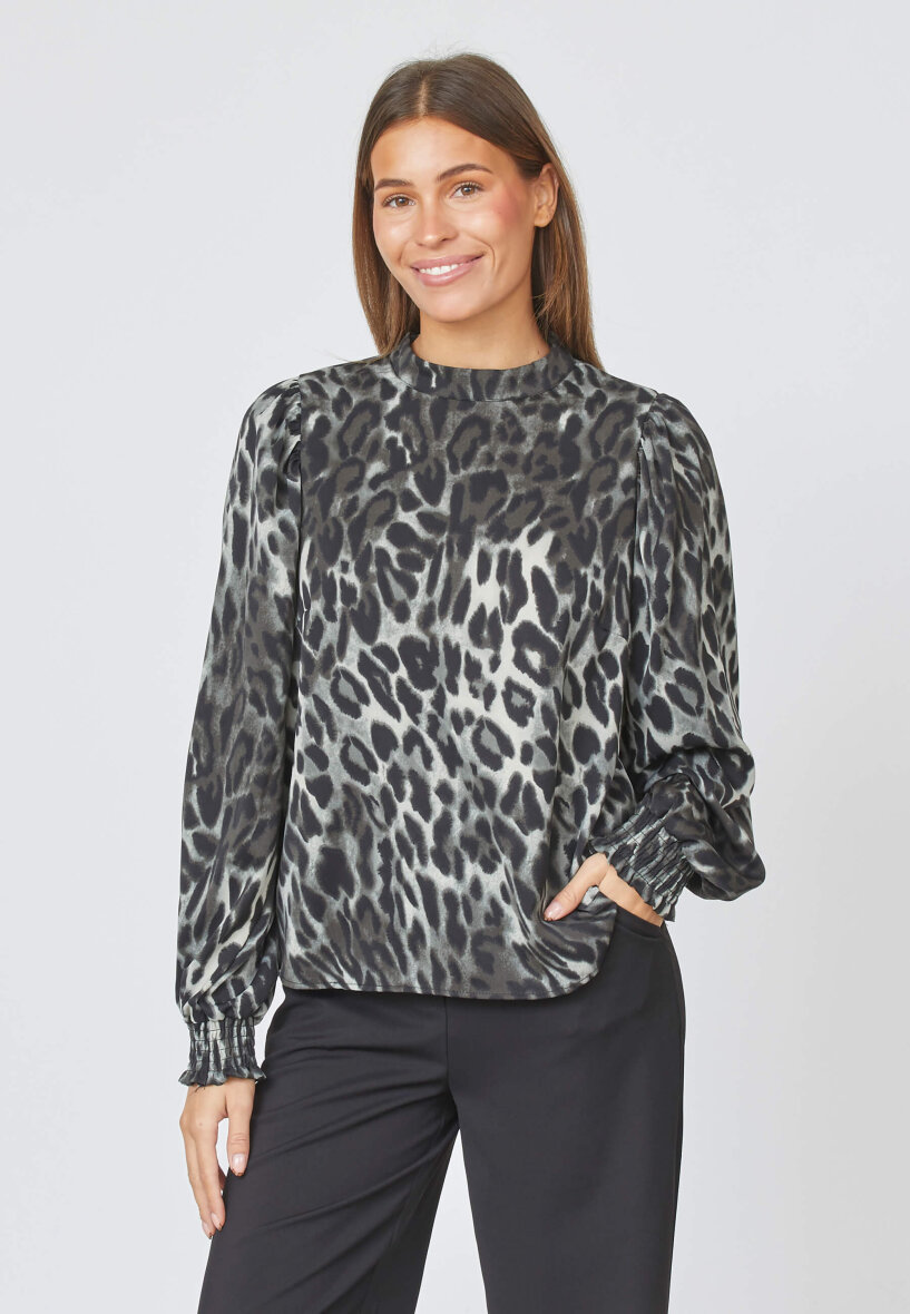 Fin og feminin bluse fra Sisters Point med all-over leopard print. Det moderne leopard print er lavet i fine grå og khaki nuancer, som giver et flot og elegant look.