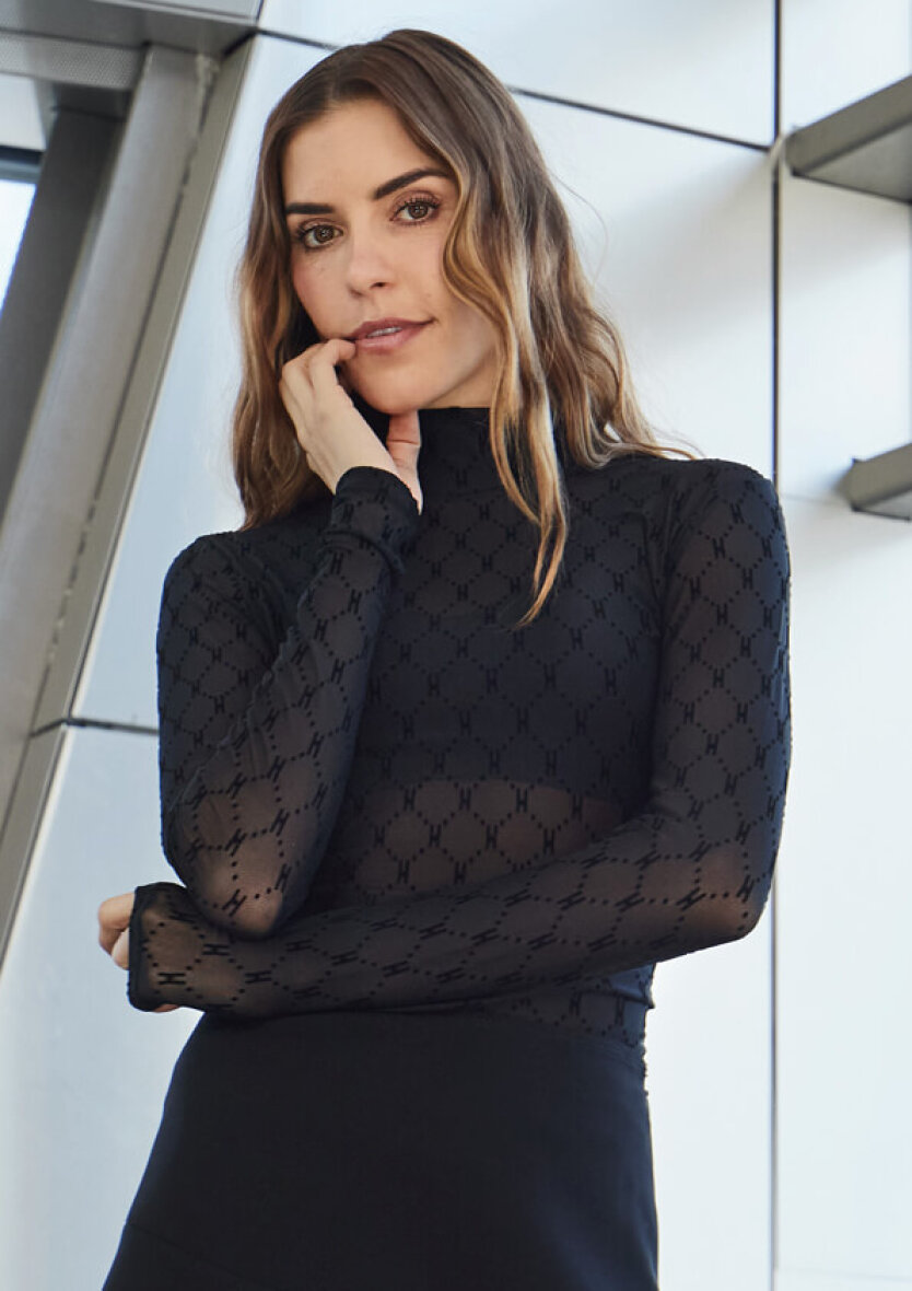 Den fineste sorte mesh bluse fra Hype The Detail med det ikoniske "H" logo inkorporeret i mønsteret.